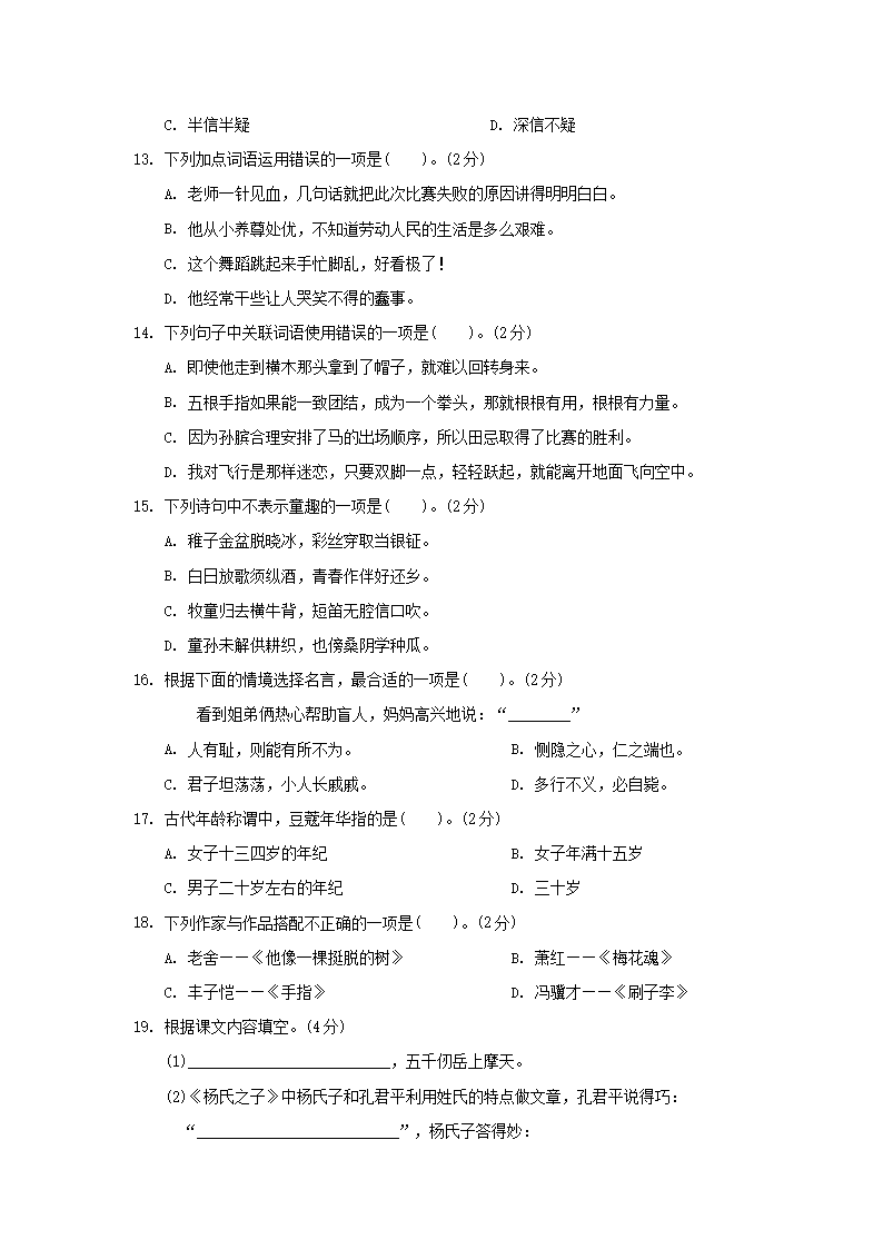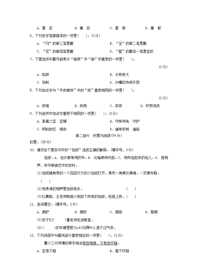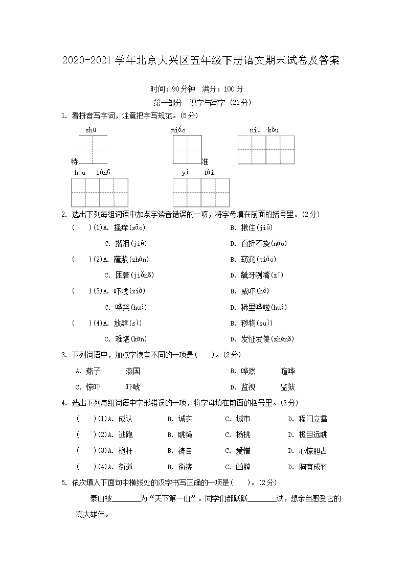【文档预览】 文档大全网整理发布2020-2021学年北京大兴区五年级下册语文期末试卷及答案(Word版),前五页预览如下: