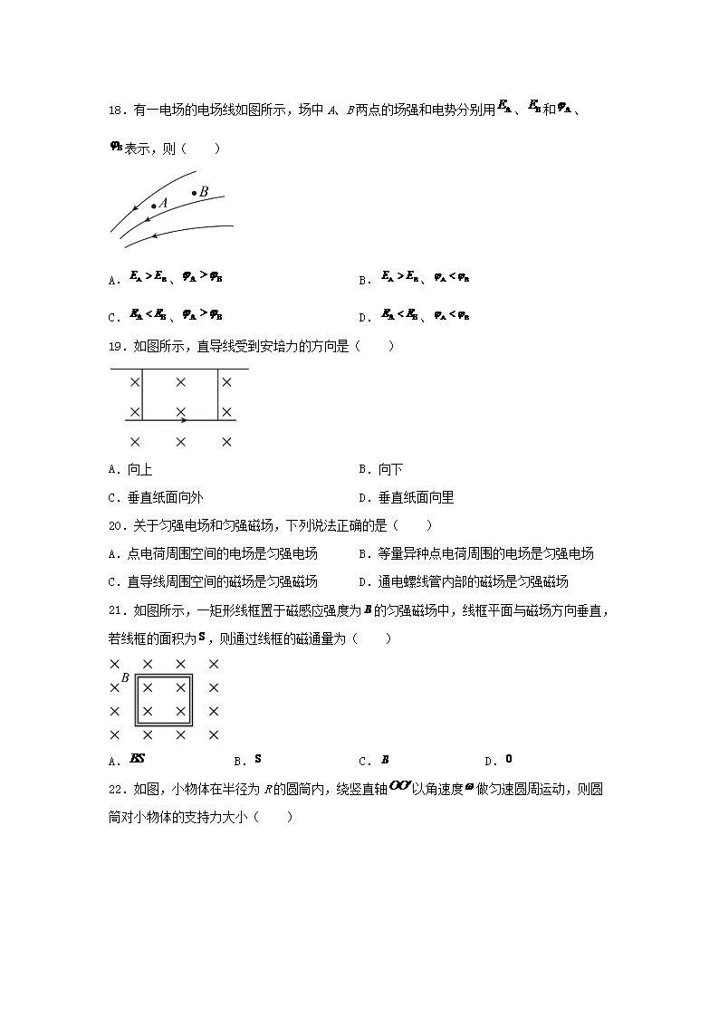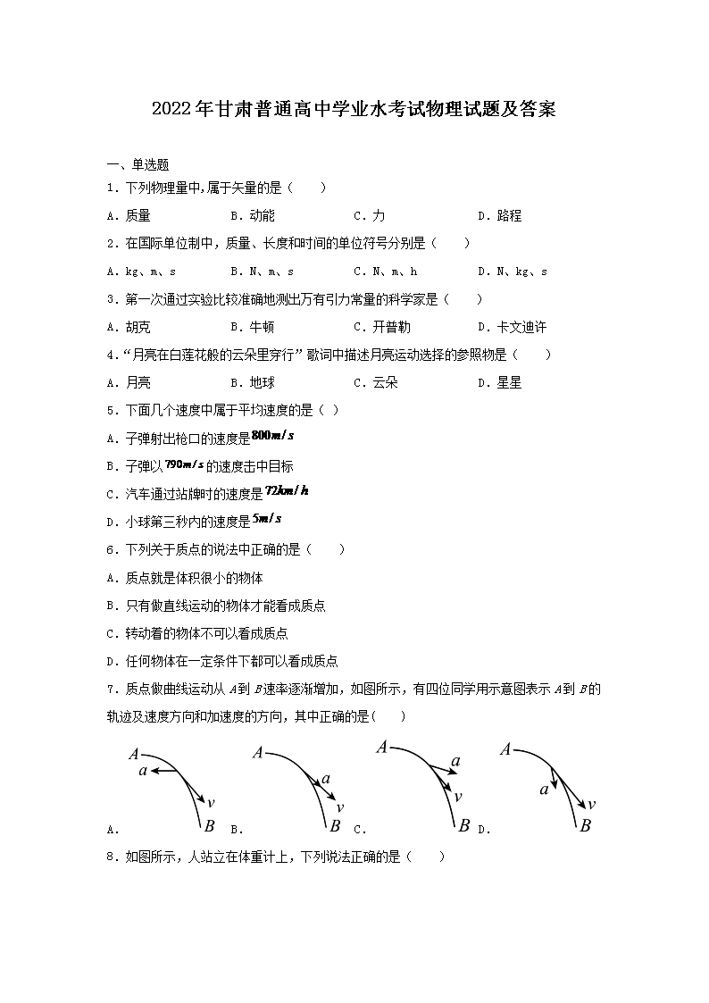 2022年甘肃普通高中学业水考试物理试题及答案(Word版)06-01