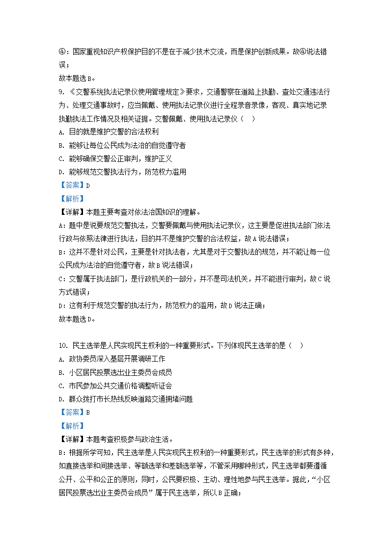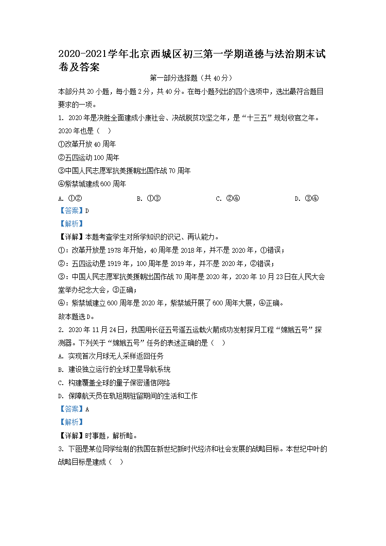 2020-2021学年北京西城区初三第一学期道德与法治期末试卷及答案(Word版)07-20