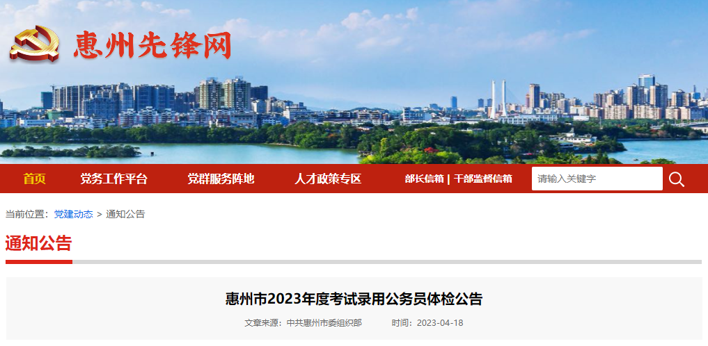 原文标题:惠州市2023年度考试录用公务员体检公告20230418