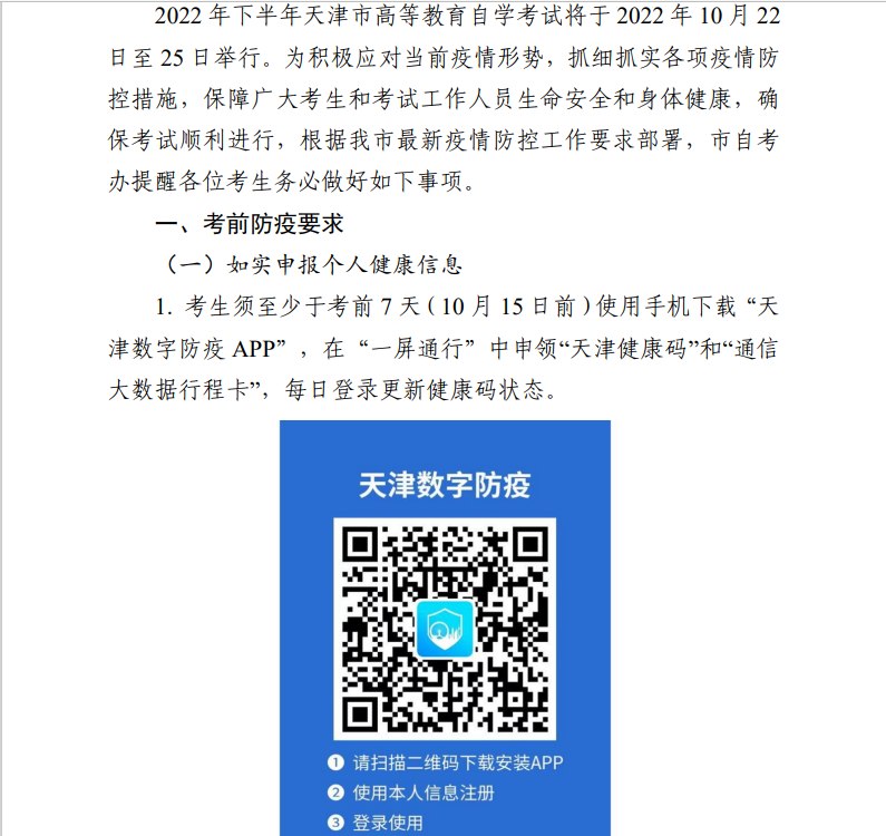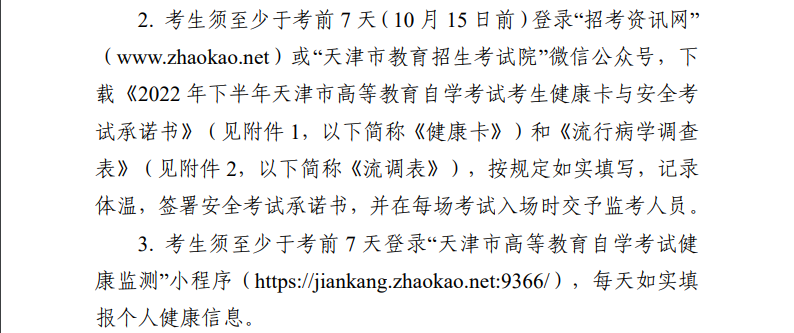 2022年下半年天津市自学考试考生疫情防控须知10-10
