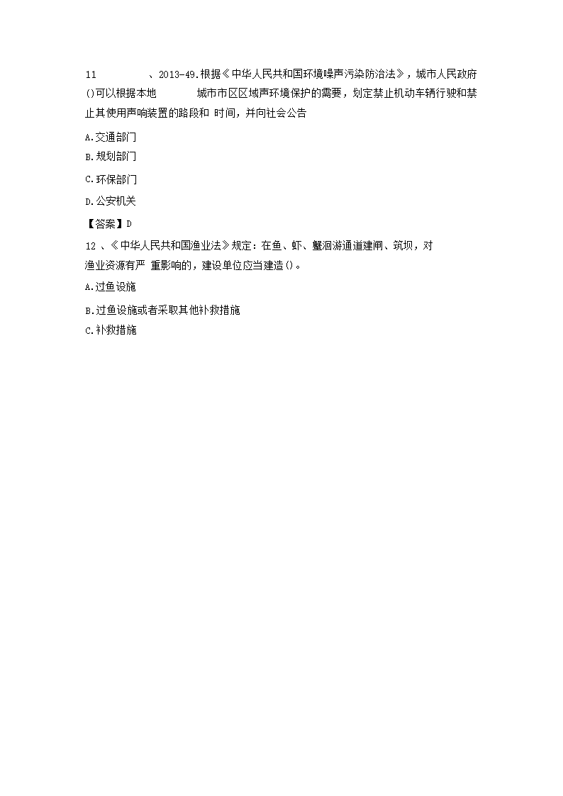 2023年环境影响评价师法律法规考试真题及答案(Word版)10-12
