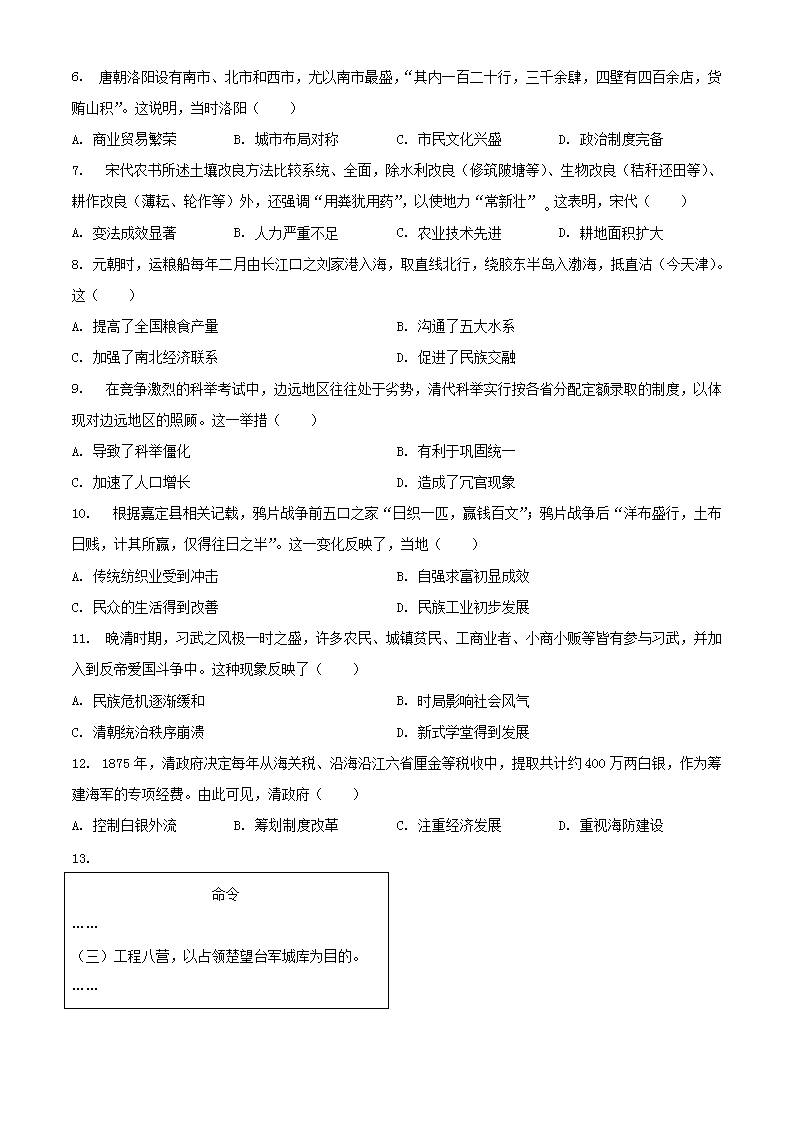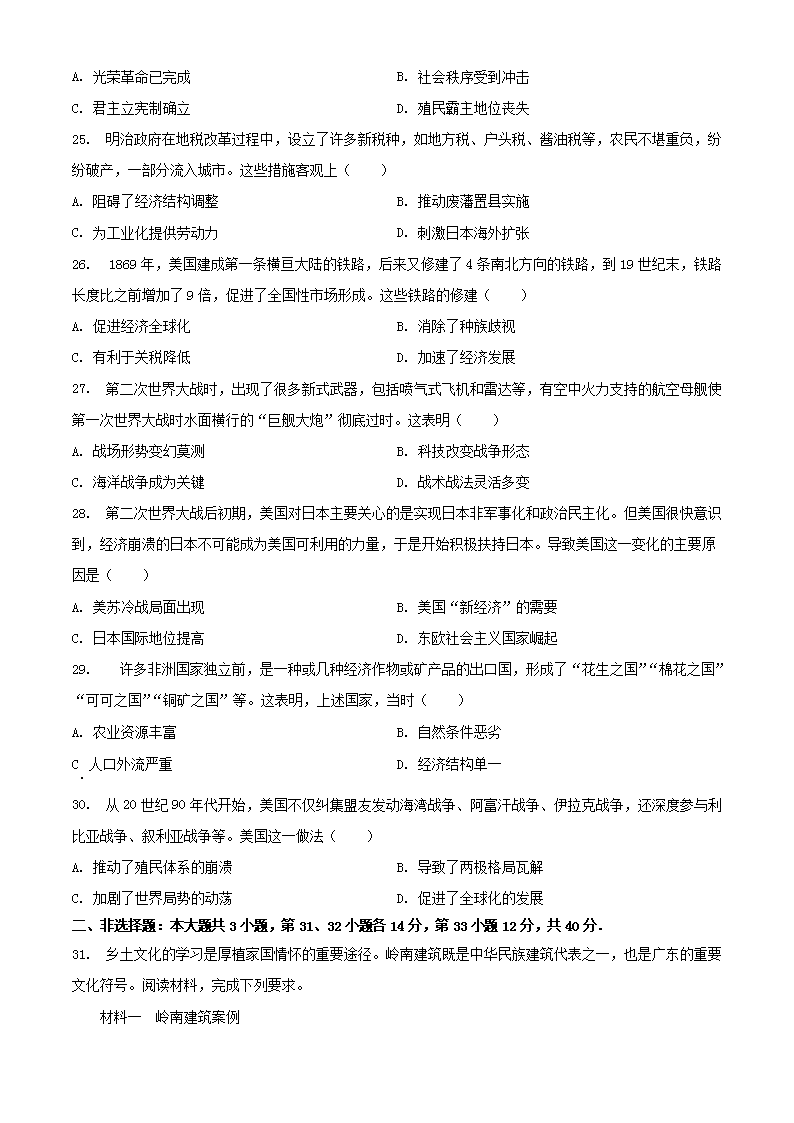 2023年广东中山中考历史真题及答案(Word版)07-01
