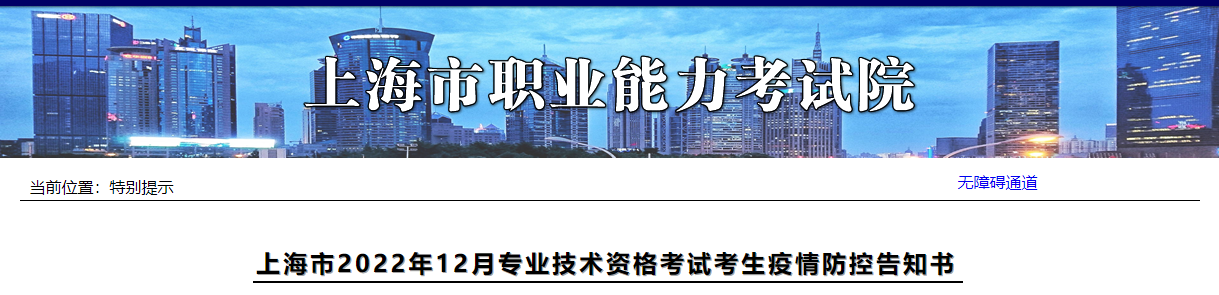 原文标题:上海市2022年12月专业技术资格考试考生疫情防控告知书