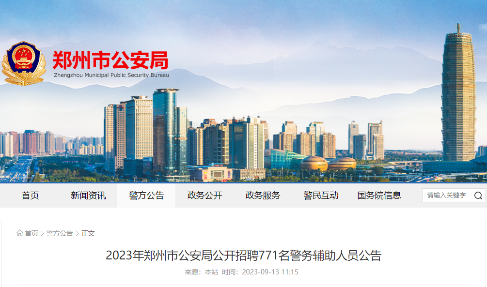2023年河南郑州市公安局招聘警务辅助人员准考证打印时间:10月11日-13日09-20