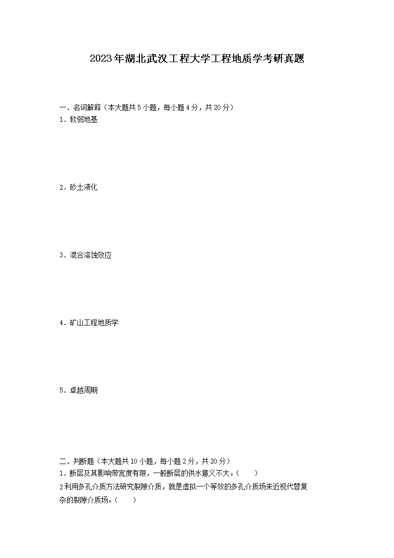 2023年湖北武汉工程大学工程地质学考研真题(Word版)10-18