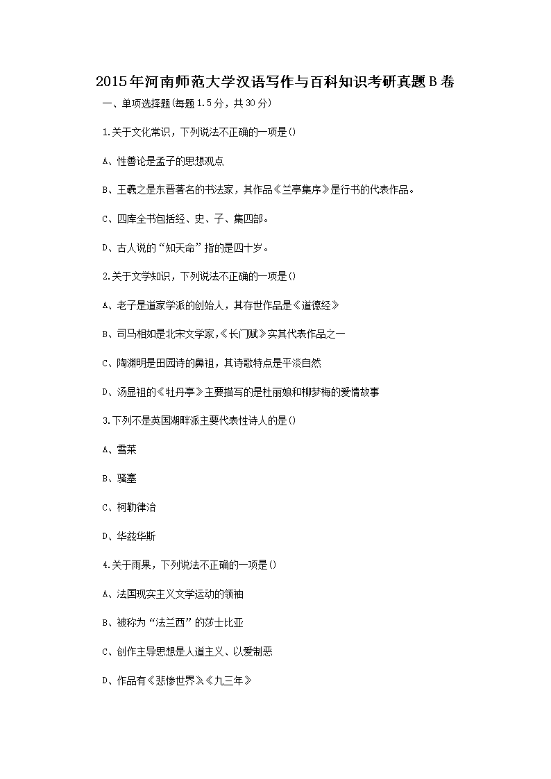 2015年河南师范大学汉语写作与百科知识考研真题B卷(Word版)06-01