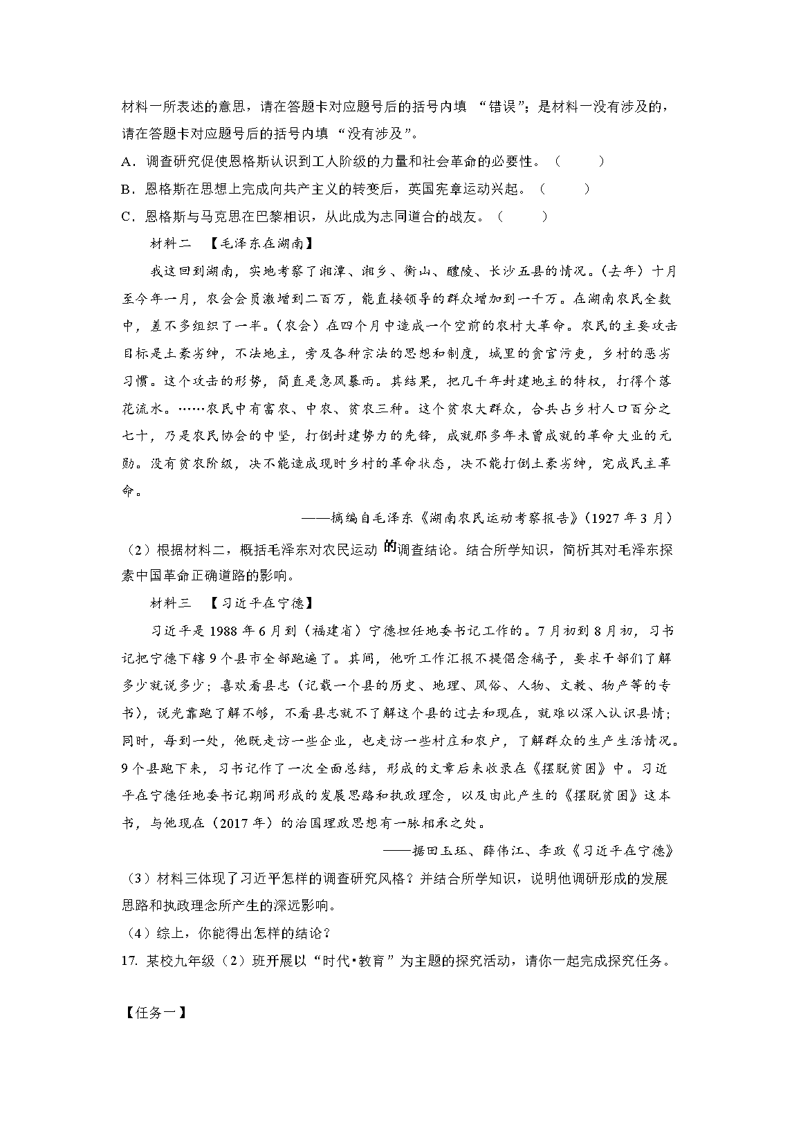 2023年重庆合川中考历史试题及答案(B卷)(Word版)06-19
