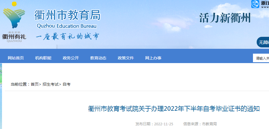 浙江衢州关于办理2022年下半年自考毕业证书的通知11-26