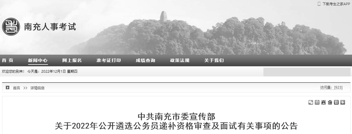 原文标题:中共南充市委宣传部关于2022年公开遴选公务员递补资格审查及面试有关事项的公告