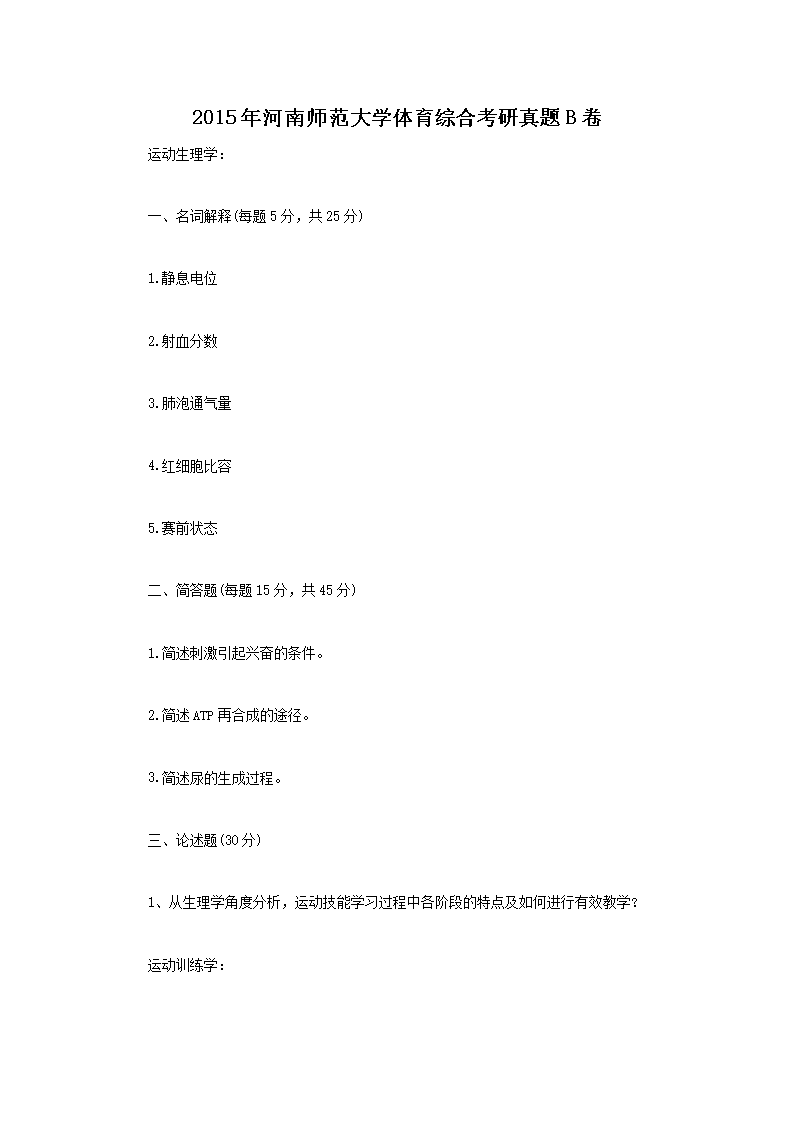 2015年河南师范大学体育综合考研真题B卷(Word版)05-31