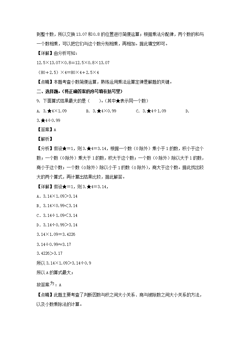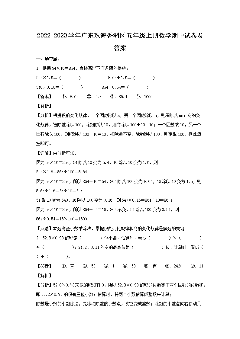 2022-2023学年广东珠海香洲区五年级上册数学期中试卷及答案(Word版)09-13