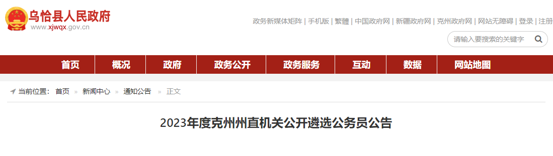 【#遴选# #2023年新疆克州州直机关遴选公务员公告(72人)#】®文档大全网从乌恰县人民政府了解到,2023年新疆克州州直机关遴选公务员72人,相关事宜详情如下: