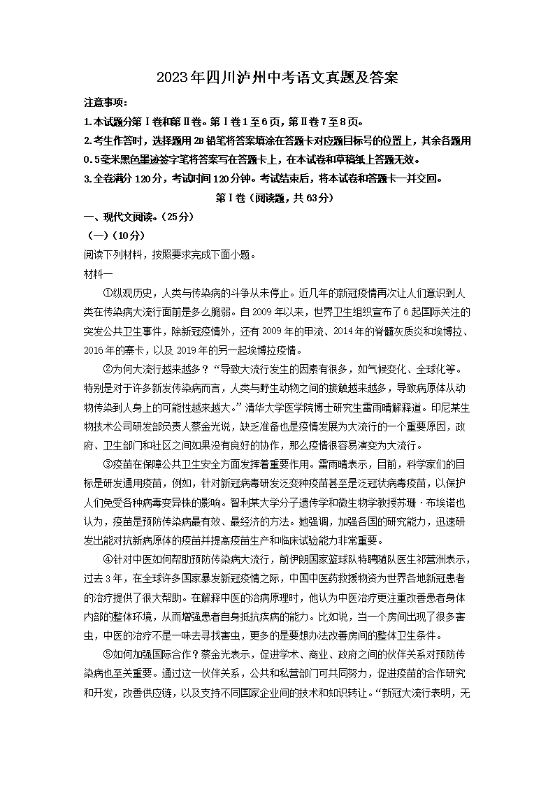 2023年四川泸州中考语文真题及答案(Word版)06-17