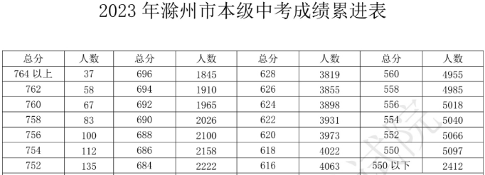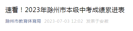 2023年安徽滁州市本级中考成绩累进表公布07-07