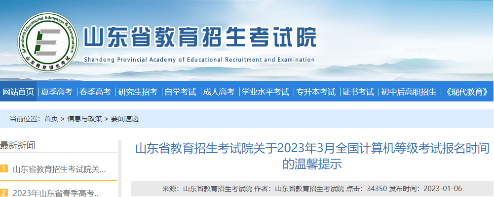 2023年3月山东全国计算机等级考试报名时间:2月中旬01-12