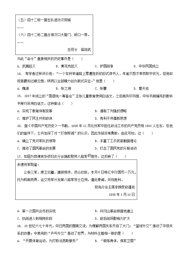 2023年广东东莞中考历史真题及答案(Word版)07-01