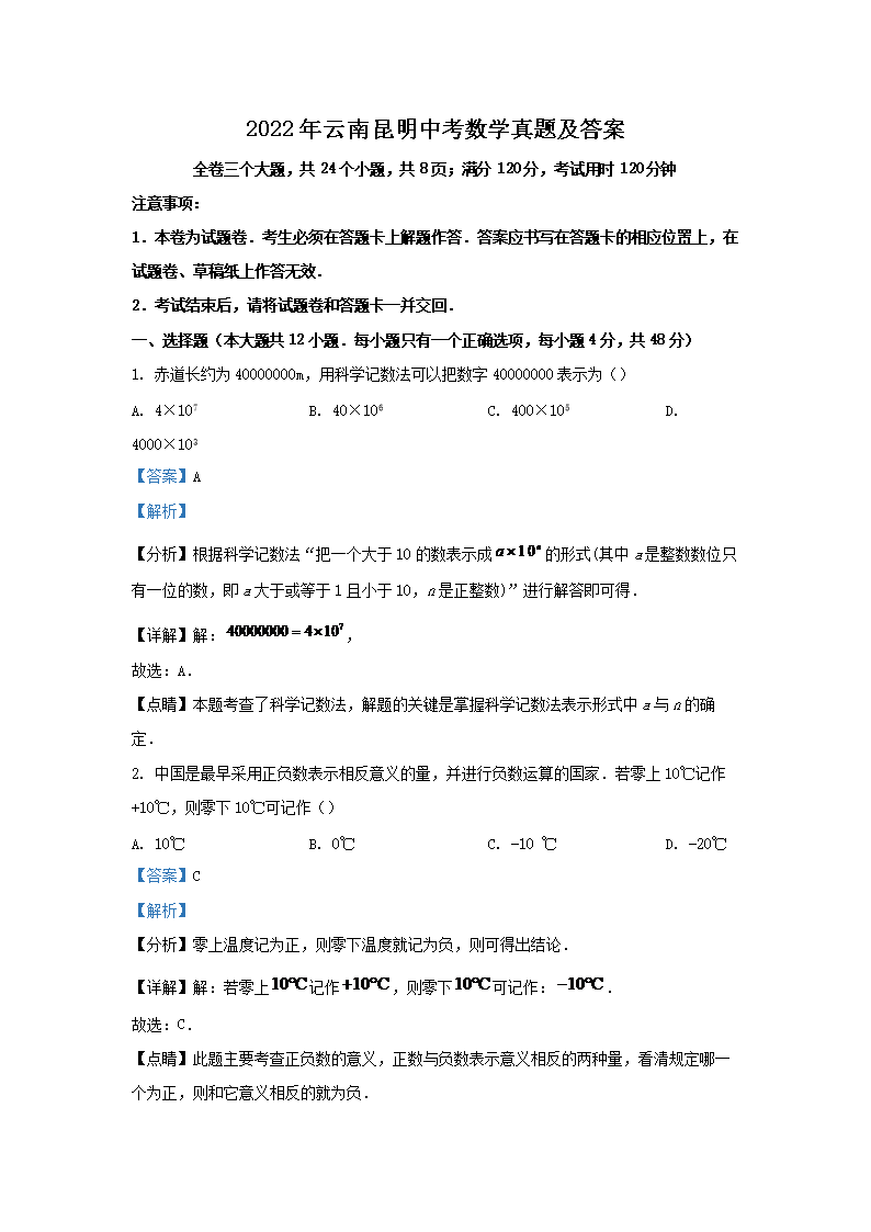 【文档预览】 文档大全网整理发布2022年云南昆明中考数学真题及答案(Word版),前五页预览如下: