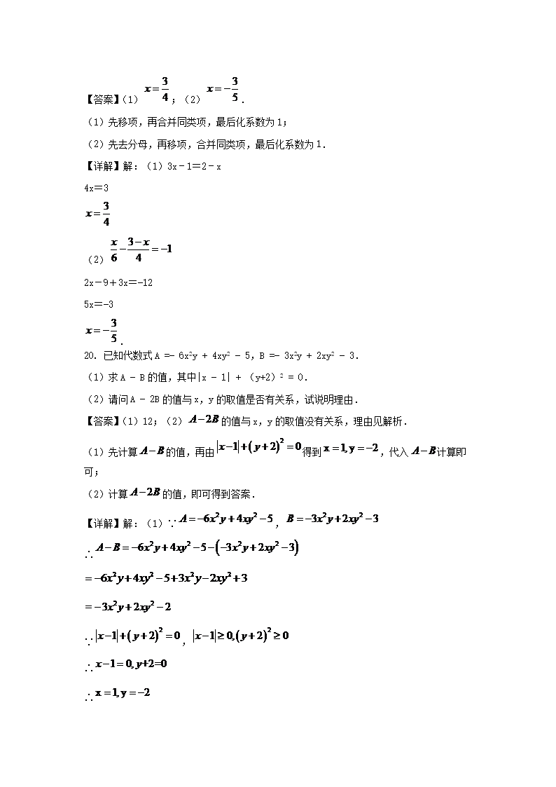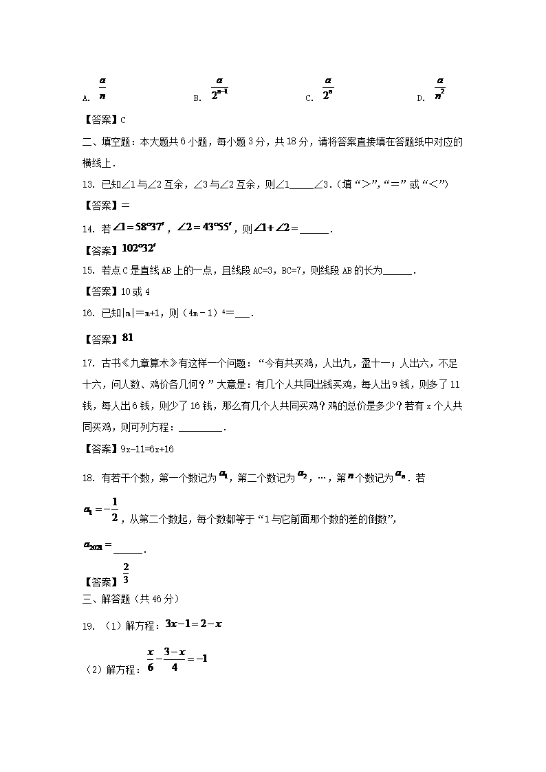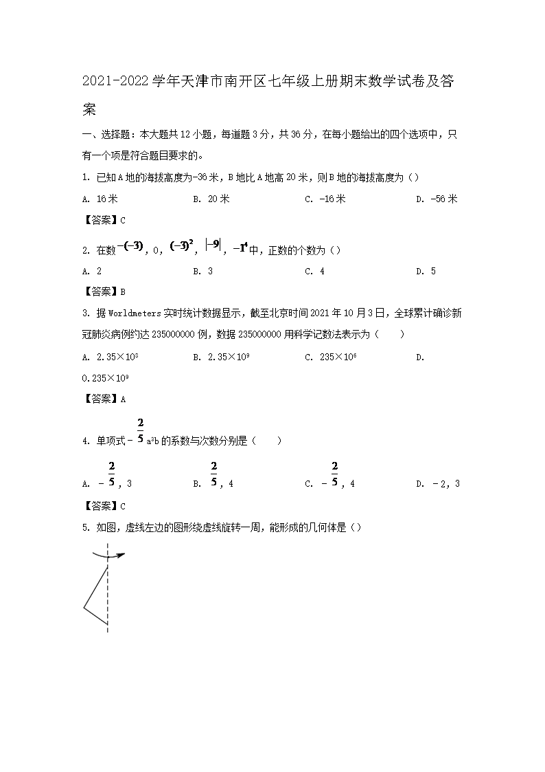 2021-2022学年天津市南开区七年级上册期末数学试卷及答案(Word版)09-15