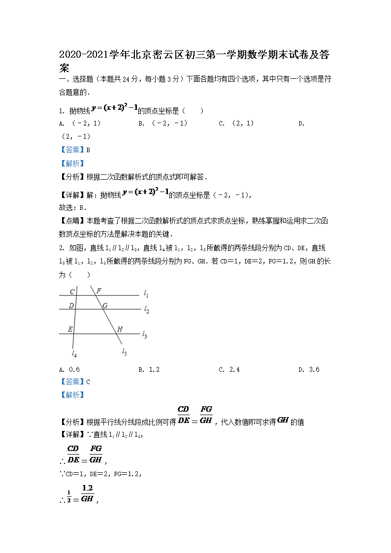 【文档预览】 文档大全网整理发布2020-2021学年北京密云区初三第一学期数学期末试卷及答案(Word版),前五页预览如下: