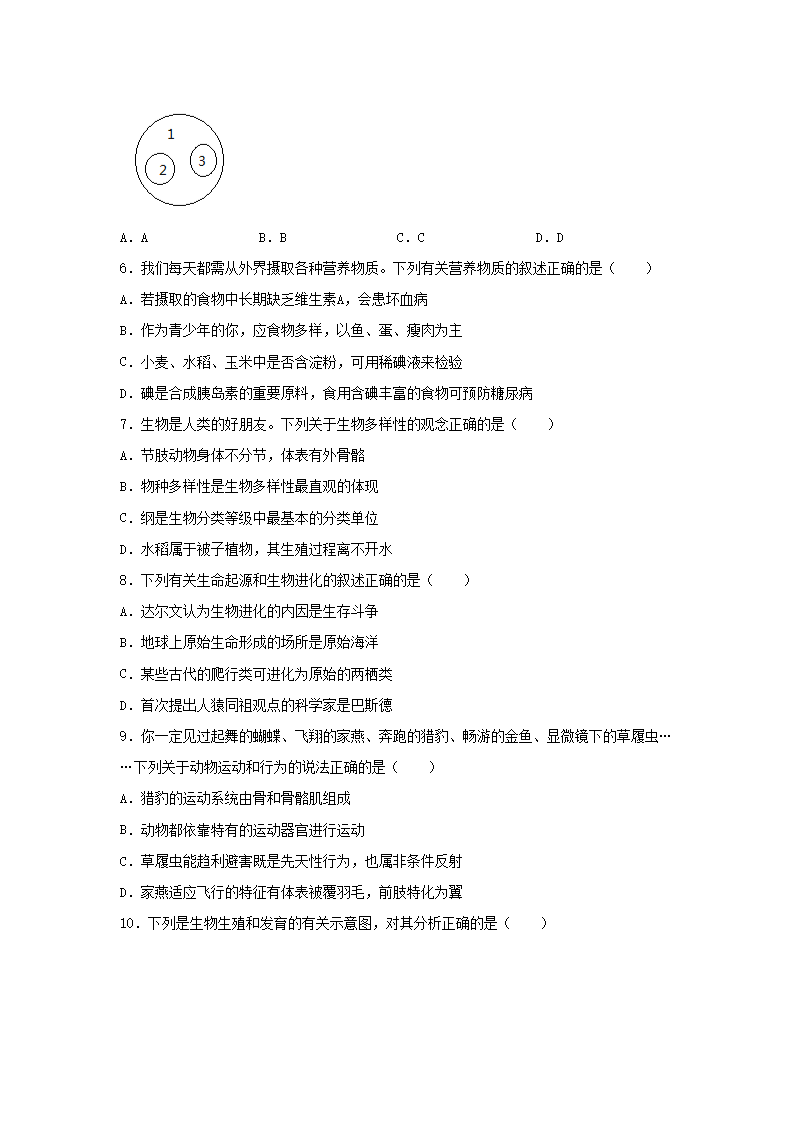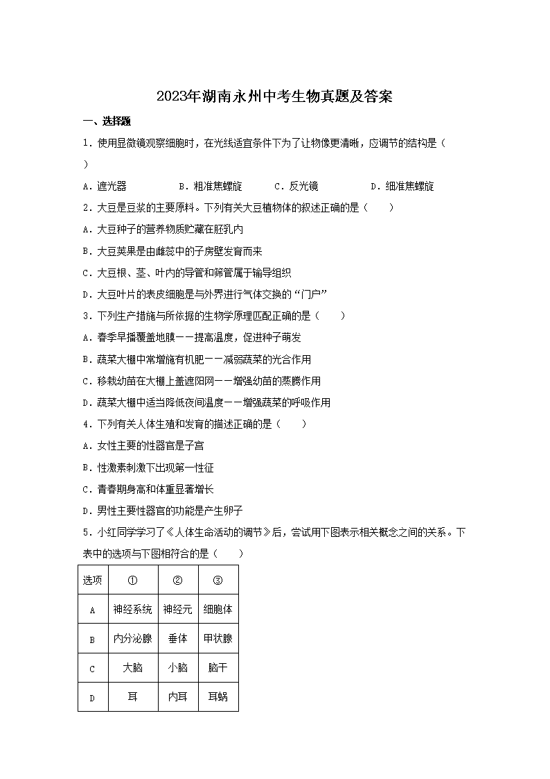 2023年湖南永州中考生物真题及答案(Word版)08-03