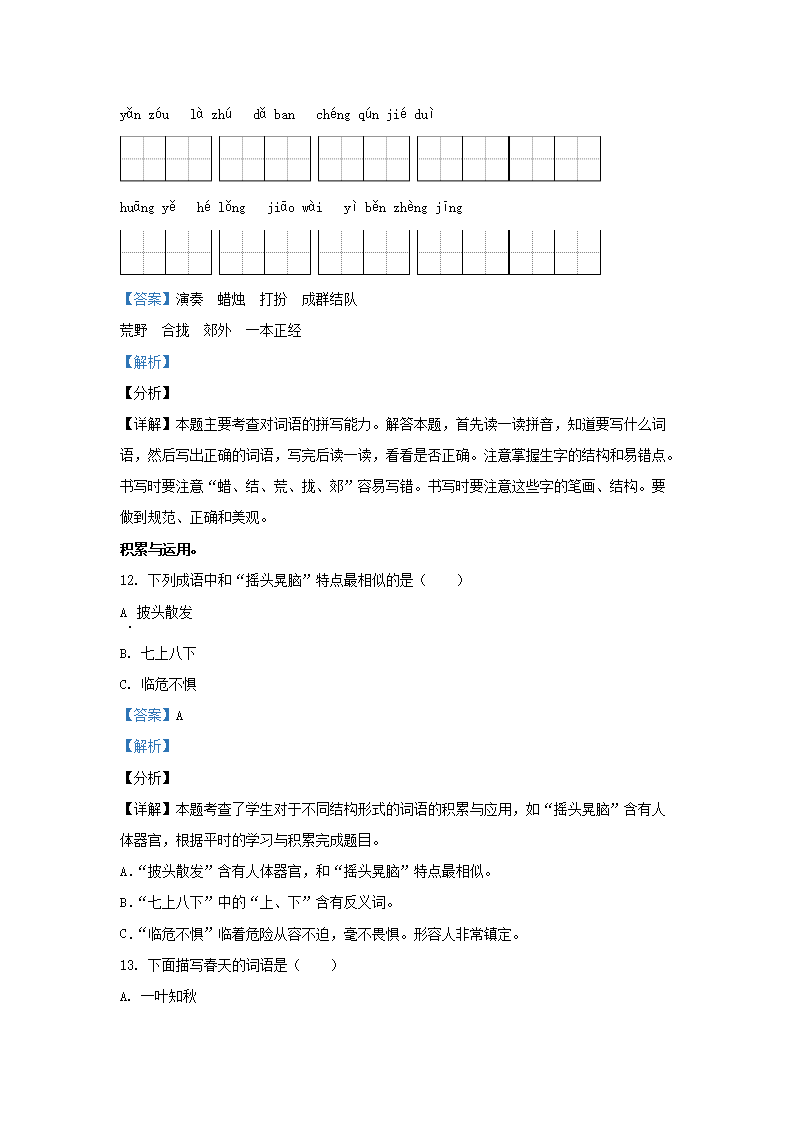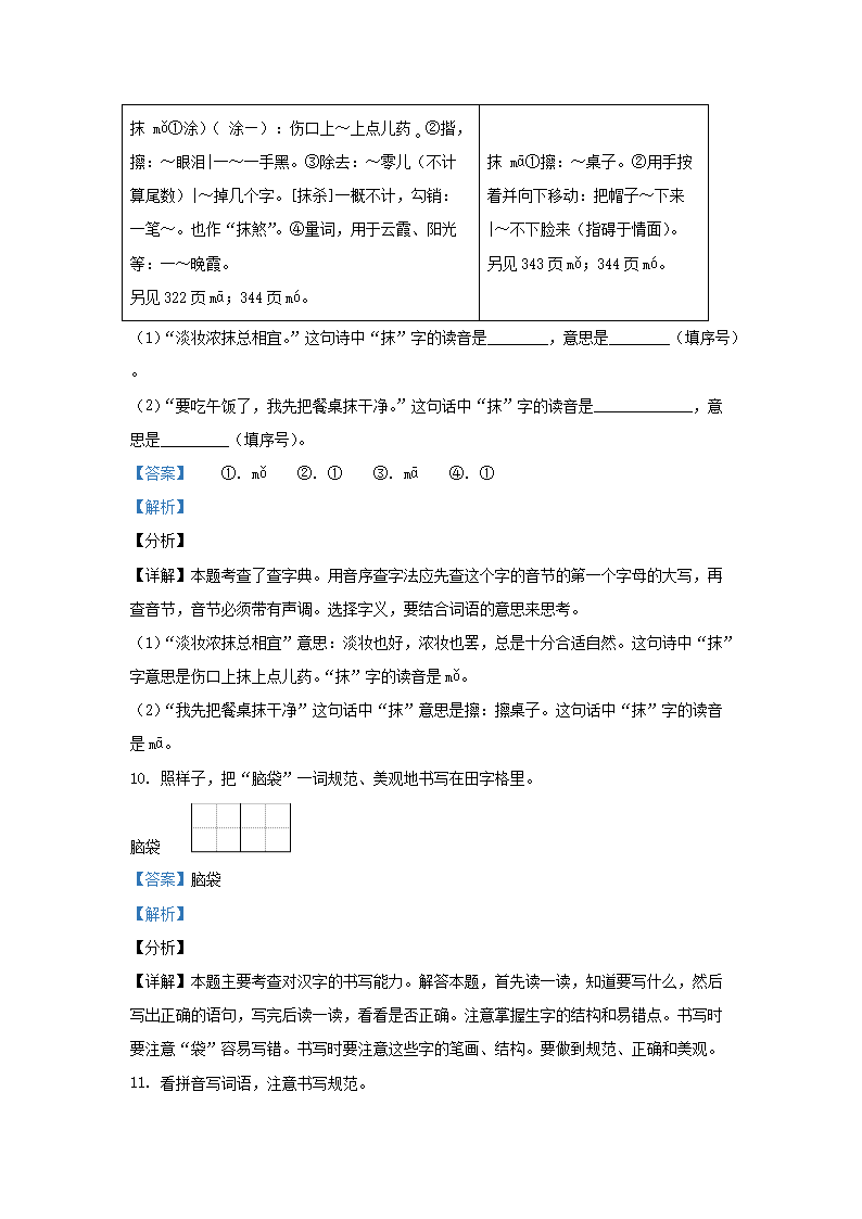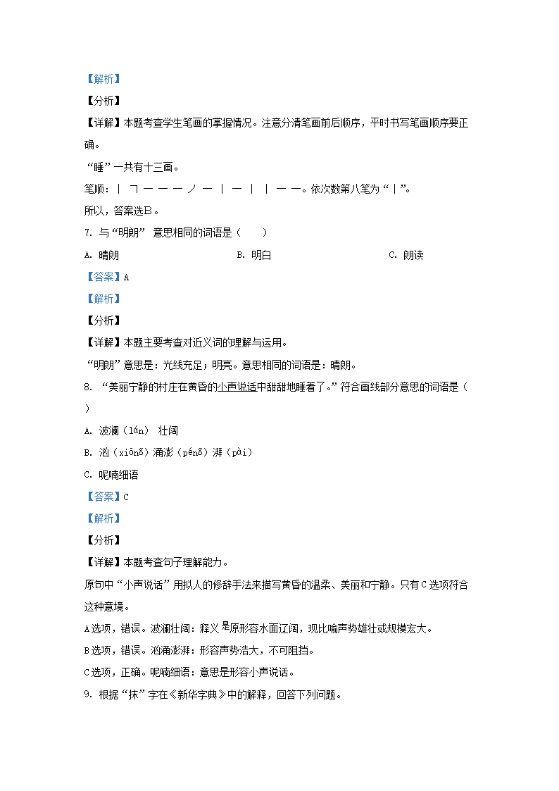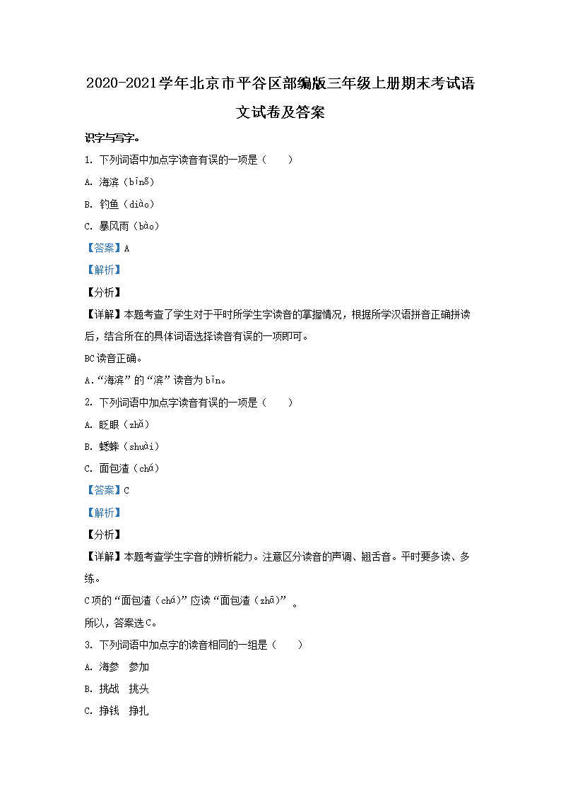 2020-2021学年北京市平谷区部编版三年级上册期末考试语文试卷及答案(Word版)06-29