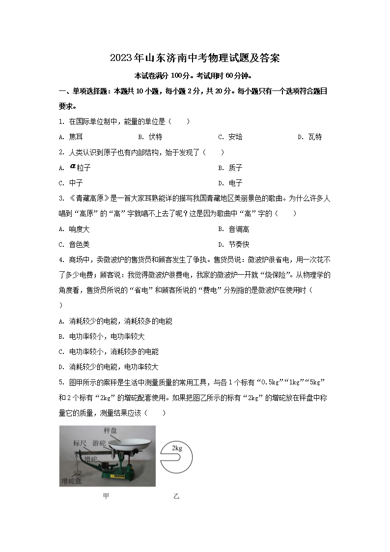 2023年山东济南中考物理试题及答案(Word版)08-09
