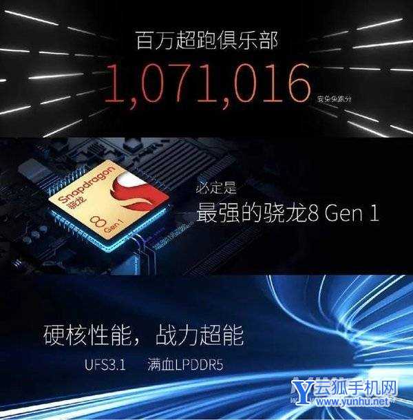 硬件配置方面,该机搭载骁龙 8 Gen 1 处理器,以及 UFS3.1、LPDDR5 存储规格,安兔兔跑分破百万。该机还搭载双扬声器,支持 Snapdragon Sound,以及 DTS 音效。