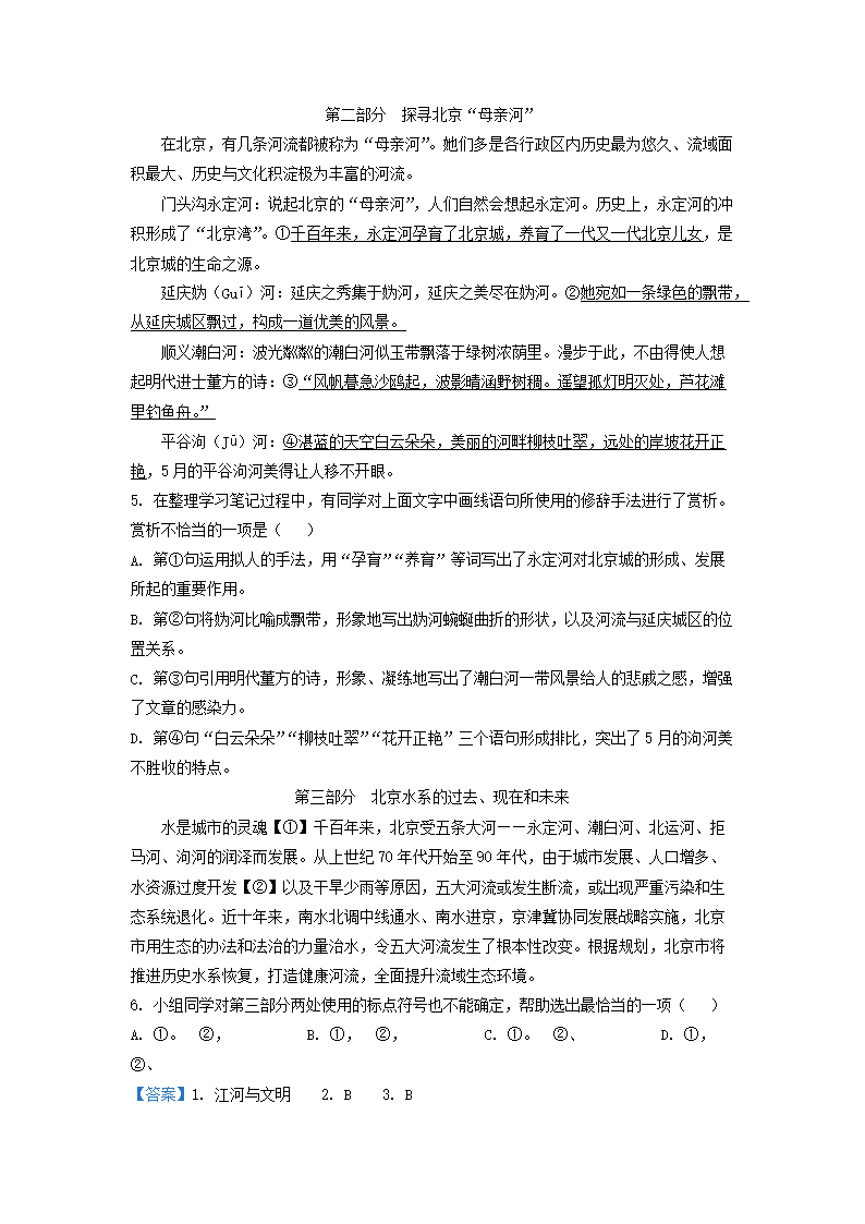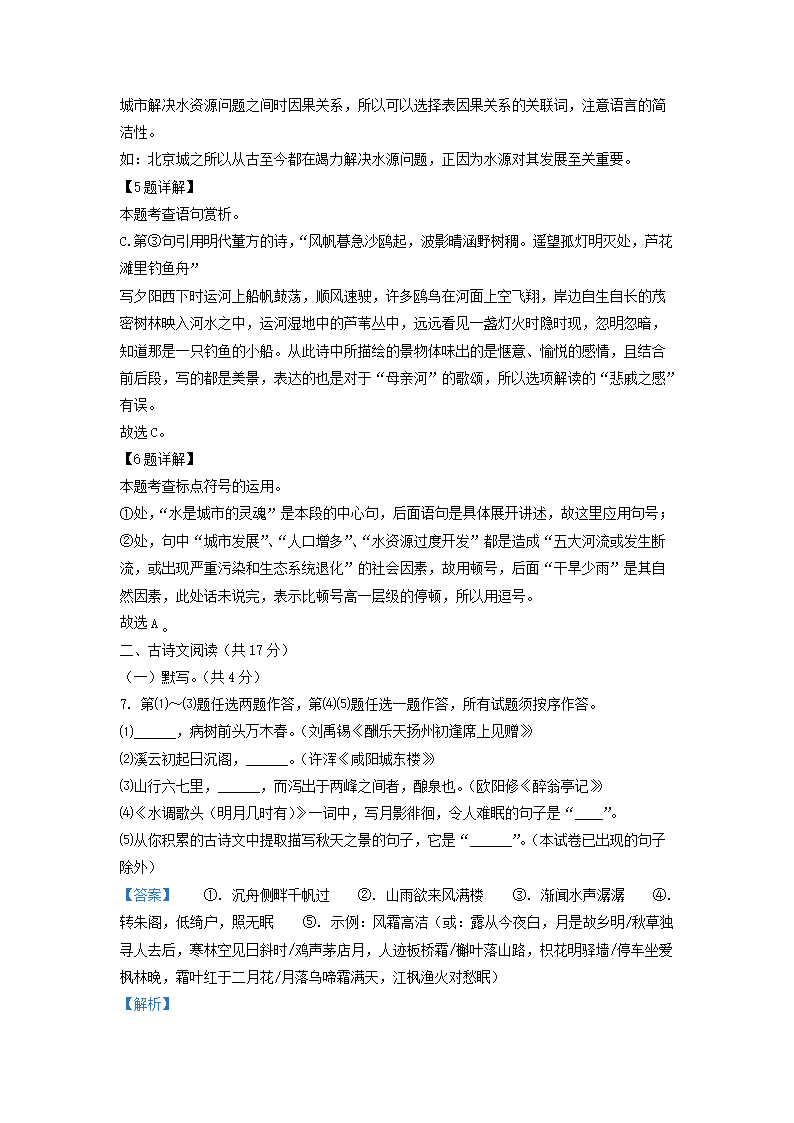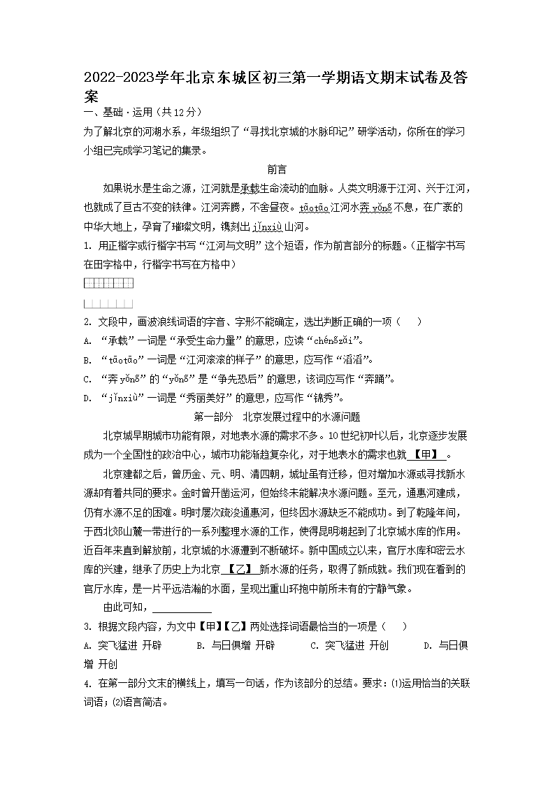 2022-2023学年北京东城区初三第一学期语文期末试卷及答案(Word版)07-28