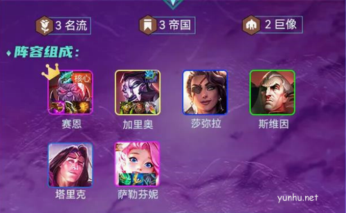 阵容羁绊:3名流 3帝国 2巨像