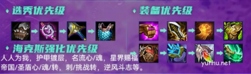 这套阵容算是比较吃海克斯强化的,特别是羁绊类强化,名流心/魂、人人为我、帝国/圣盾心/魂/转,刺/挑战转最优,人人为我、护甲镀层、星界赐福、逆风斗志等也均可选择。