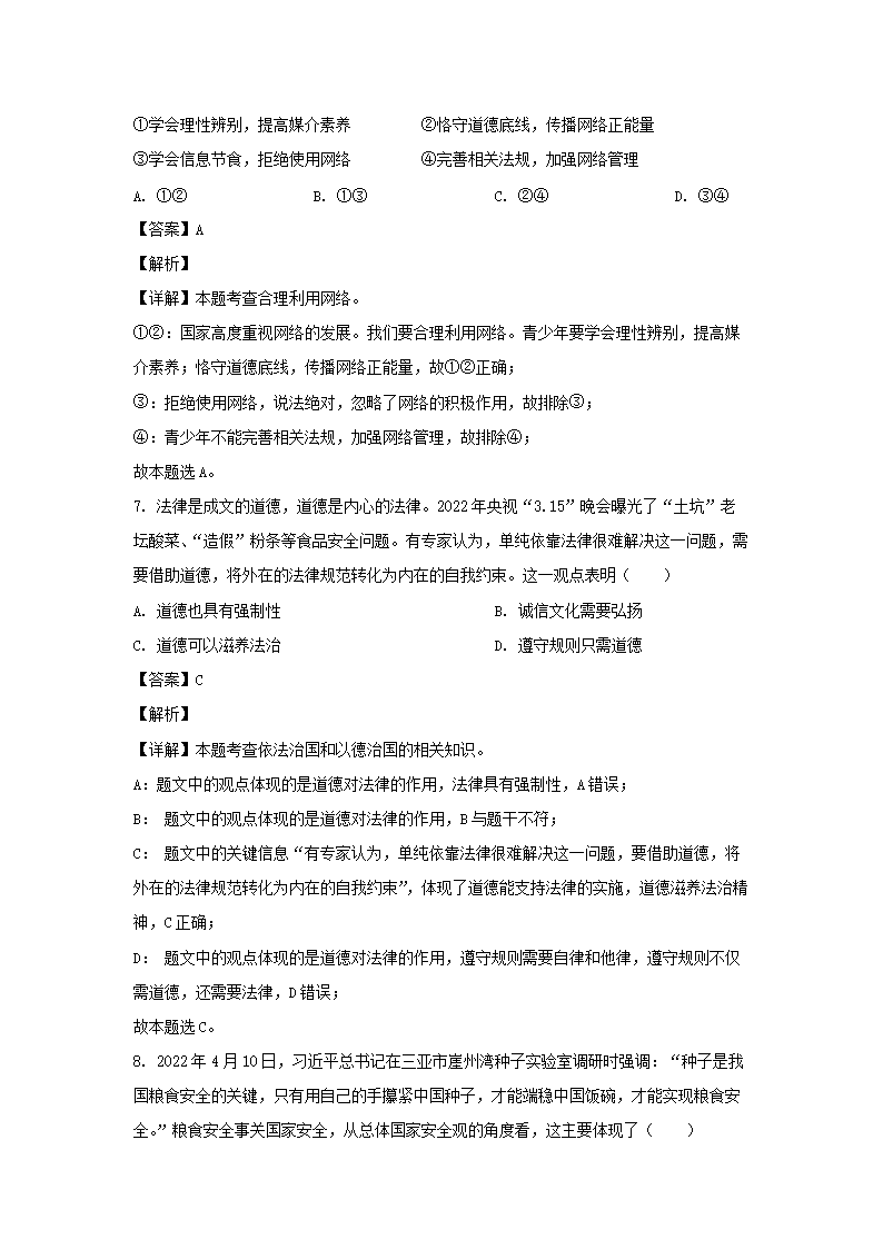 2022年四川省内江市中考道德与法治真题及答案(Word版)05-31