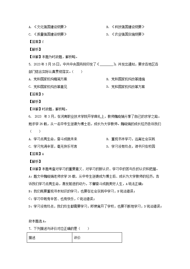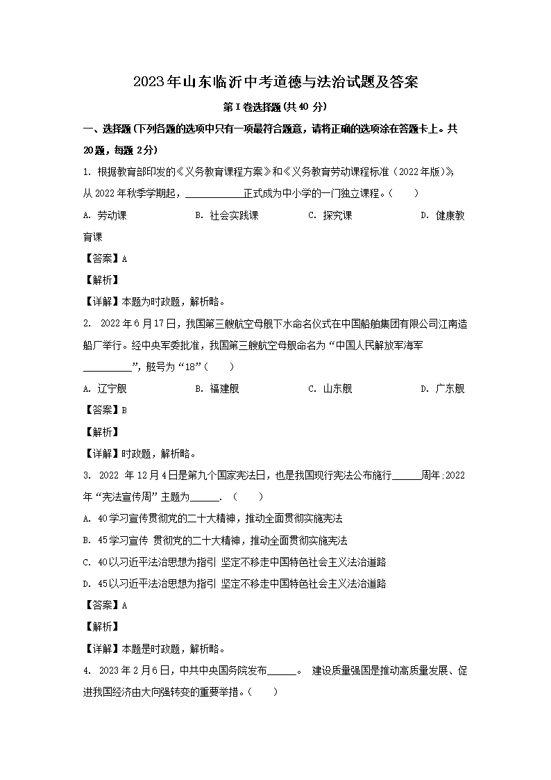 2023年山东临沂中考道德与法治试题及答案(Word版)08-02