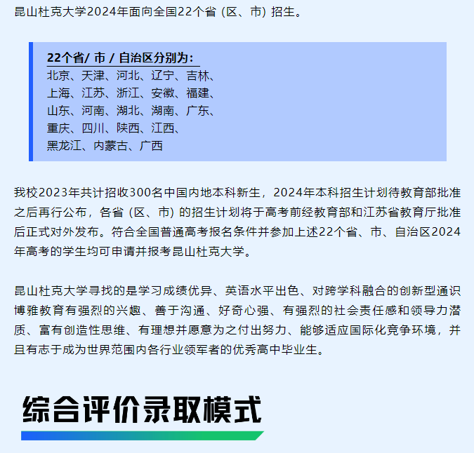 江苏:昆山杜克大学2024年本科综合评价招生入学申请正式启动!10-10