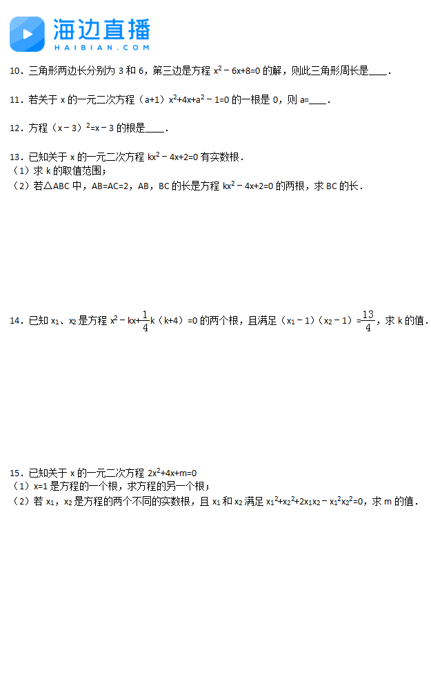 2017中考数学复习:一元二次方程易错题(三)06-25