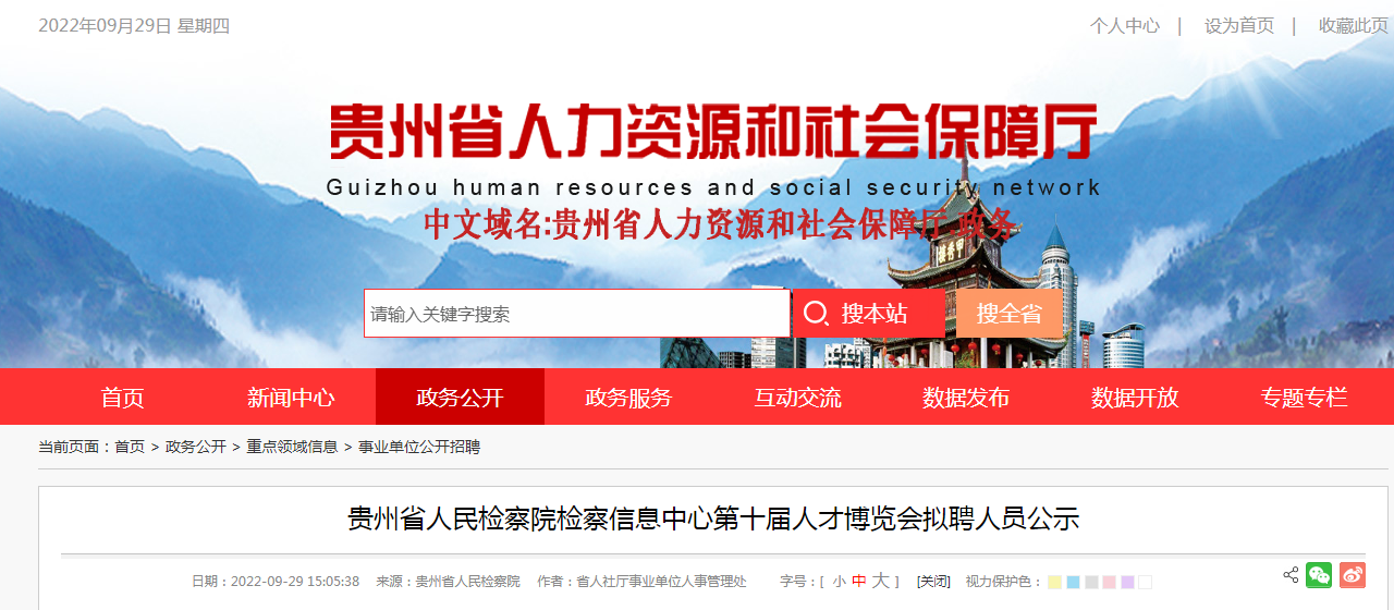 原文标题:贵州省人民检察院检察信息中心第十届人才博览会拟聘人员公示