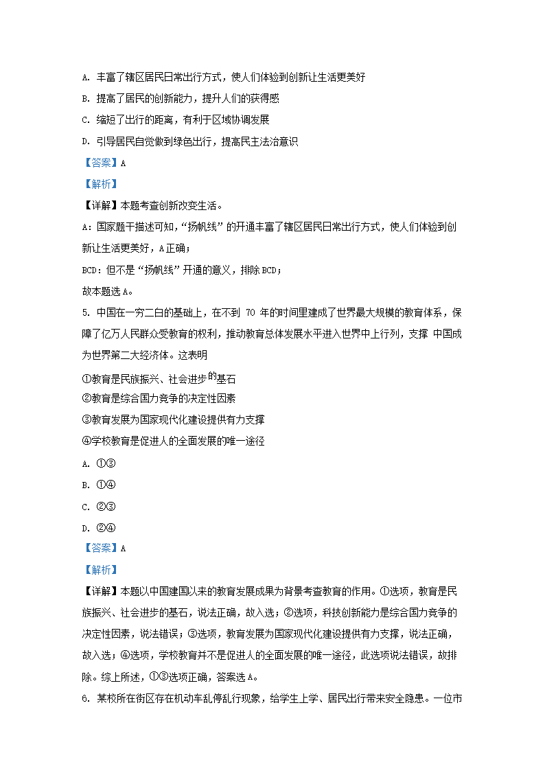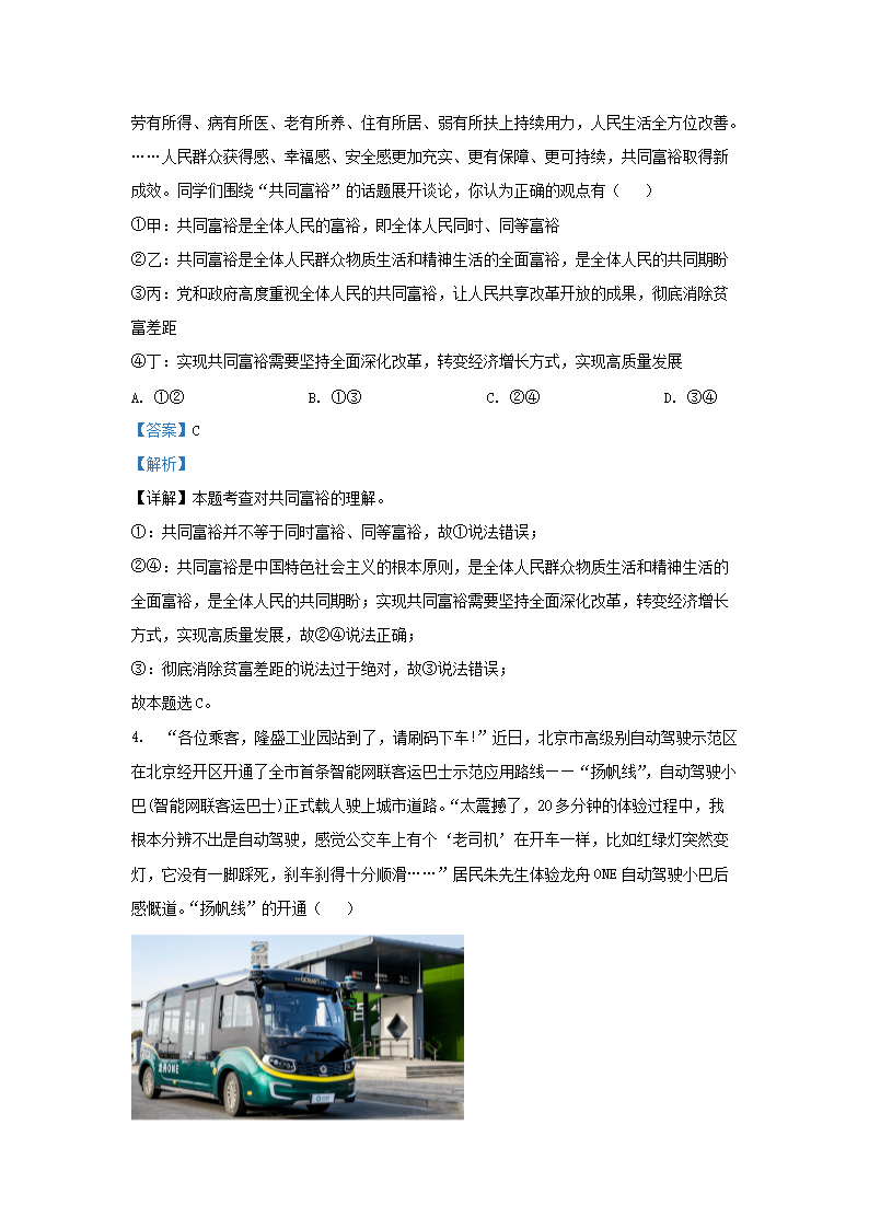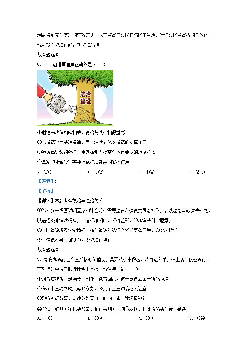 2022-2023学年北京平谷区初三第一学期道德与法治期末试卷及答案(Word版)08-02