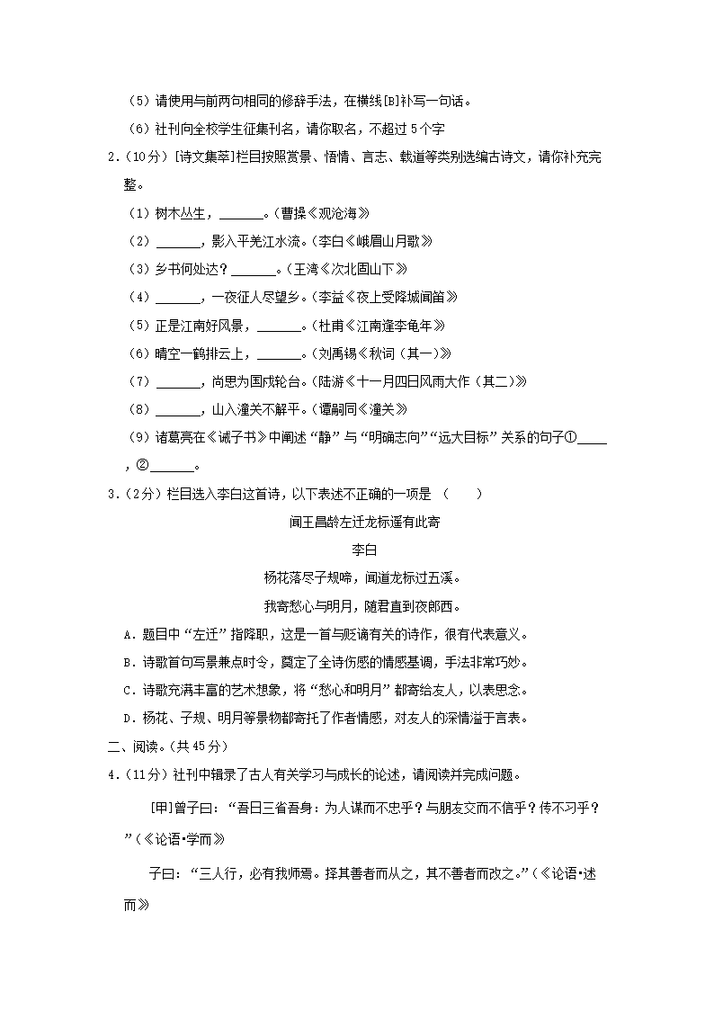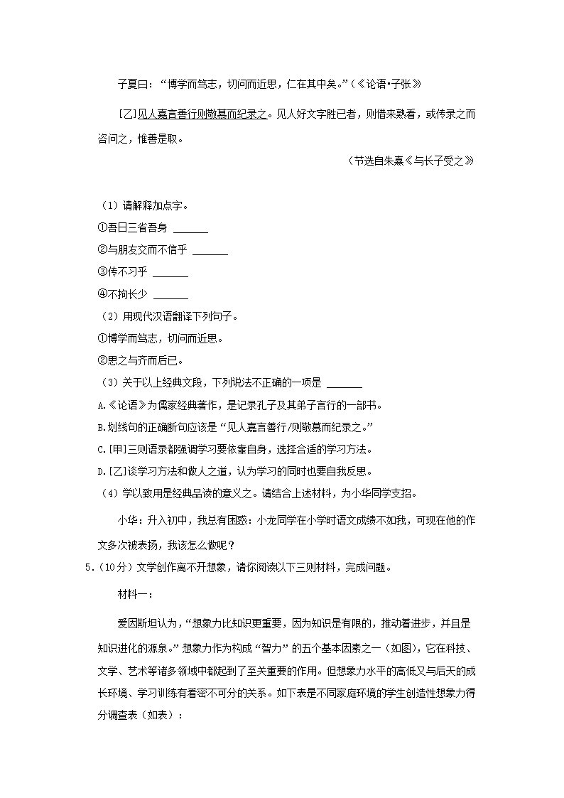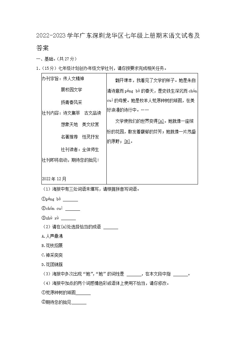 2022-2023学年广东深圳龙华区七年级上册期末语文试卷及答案(Word版)09-28