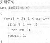 循环变量i从2开始,每执行一次循环,i的值加1,当i值等于要判断的数m时,终止循环。在每次执行循环时,用m的值对当前i的值求余,如果结果等于0,则返回0,表示该数不是素数,否则,返回1,表示该数是素数。