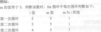 变量i是循环变量,m的值等于循环变量的终值,即要进行判断的数。表达式含义:
