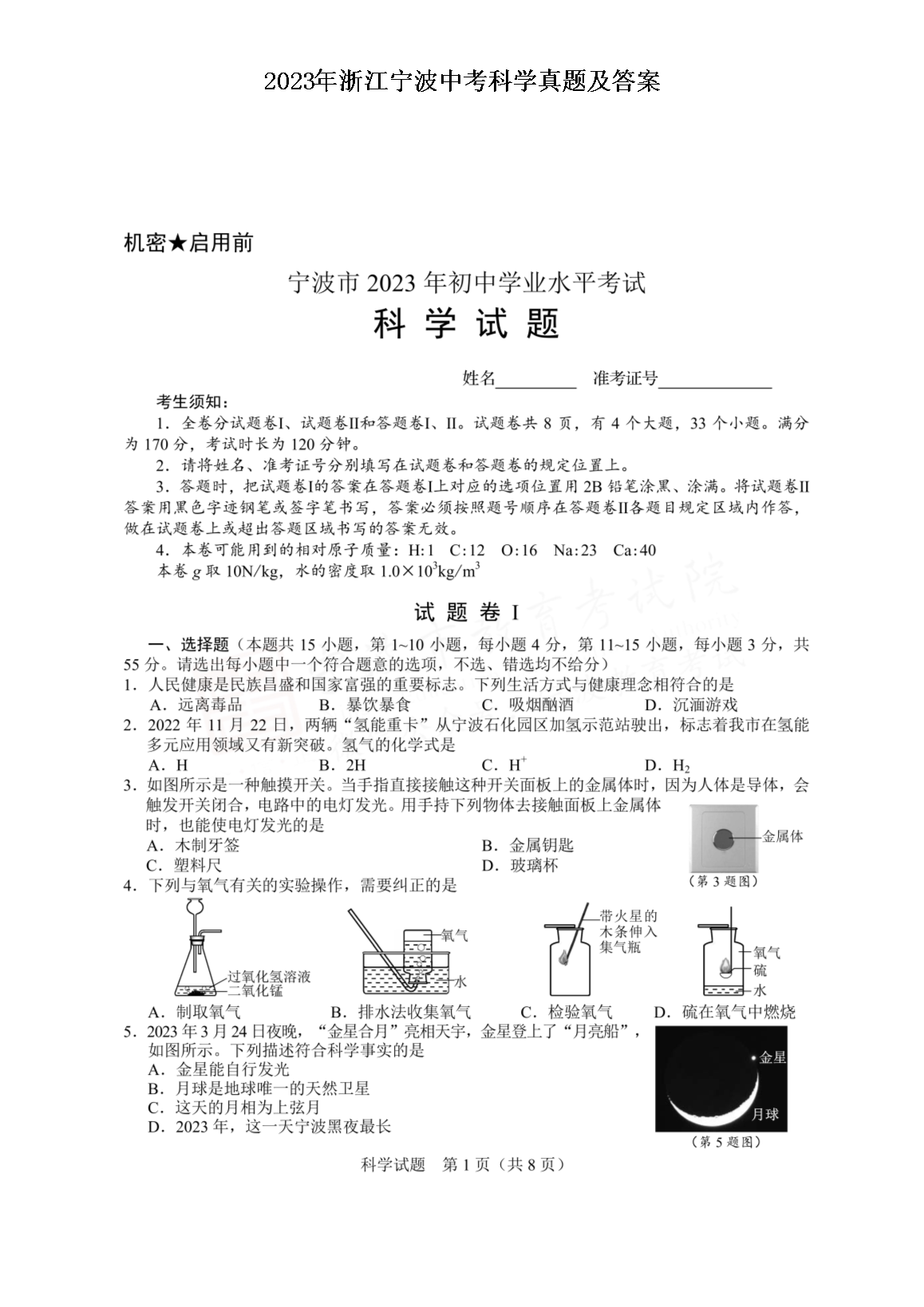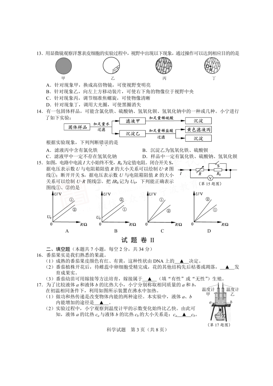 2023年浙江宁波中考科学真题及答案(图片版)06-20