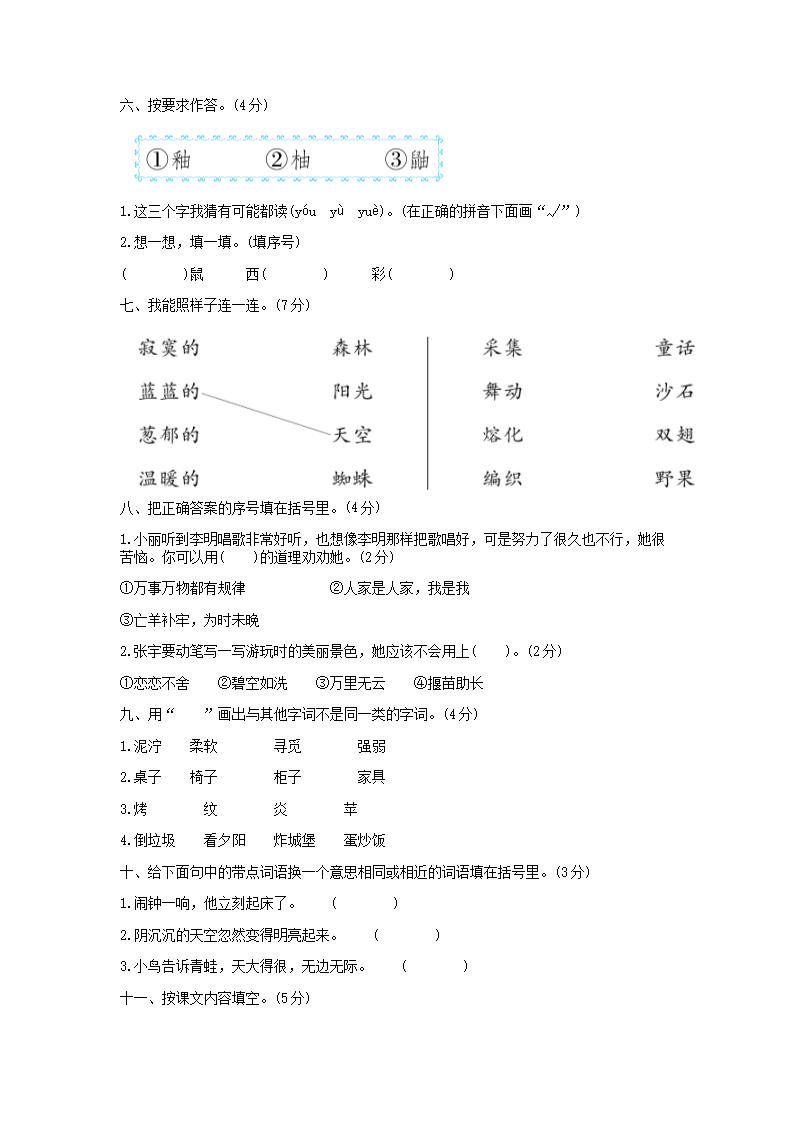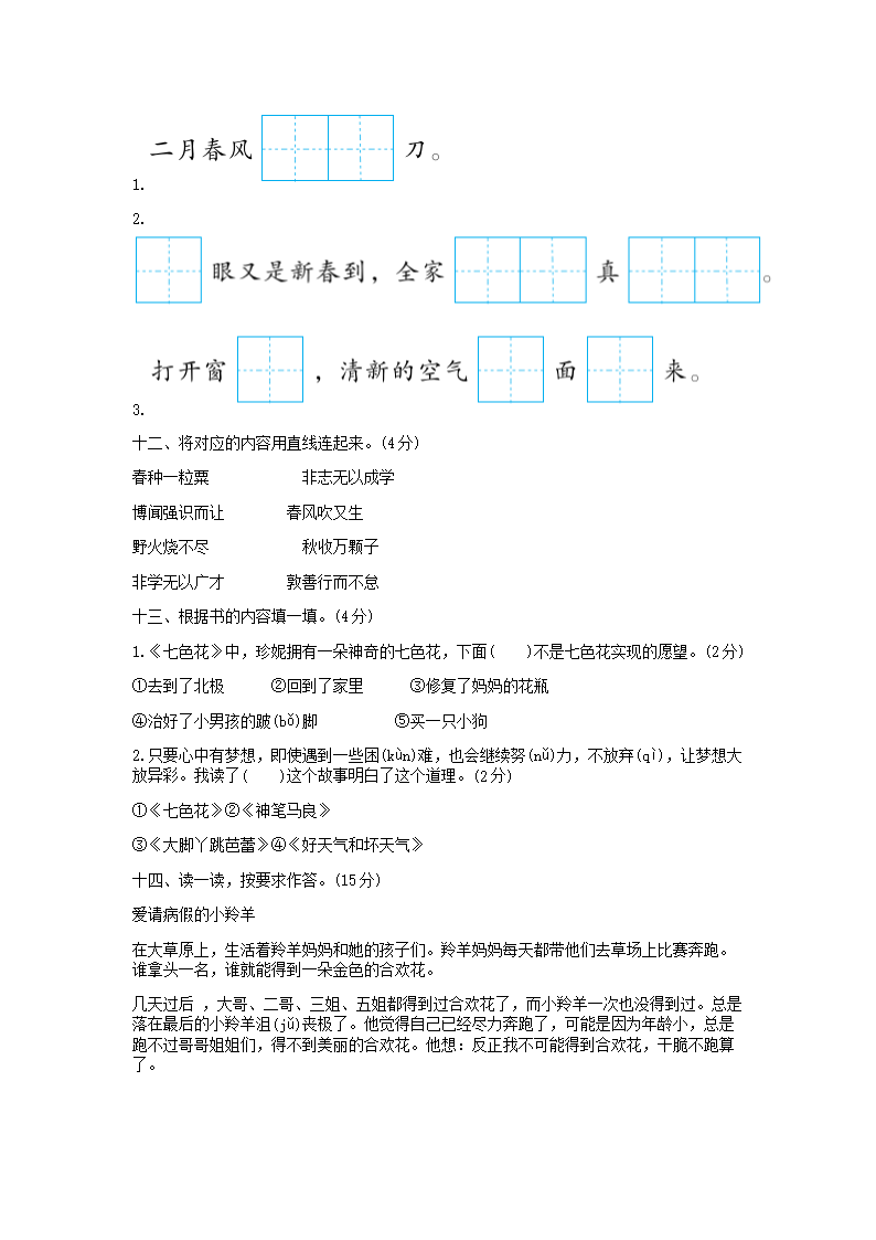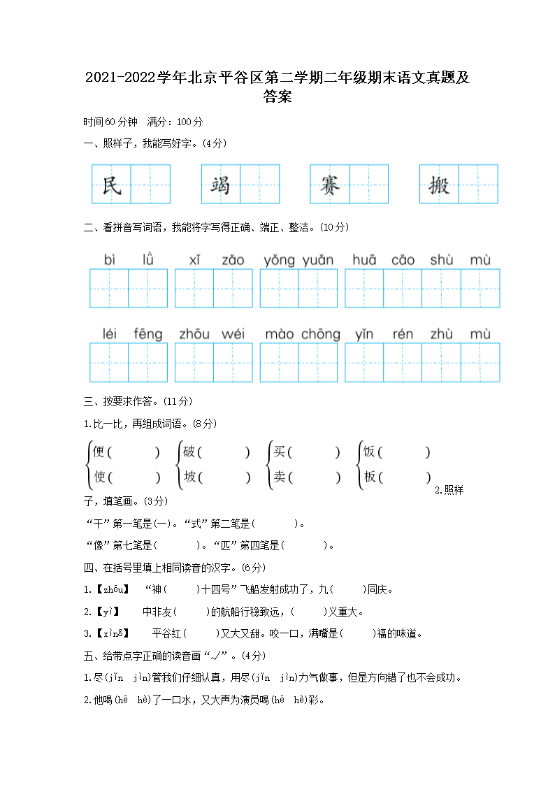 2021-2022学年北京平谷区第二学期二年级期末语文真题及答案(Word版)06-26