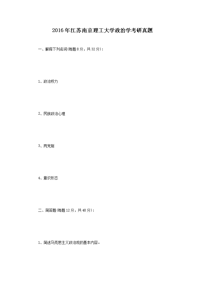 2016年江苏南京理工大学政治学考研真题(Word版)07-06