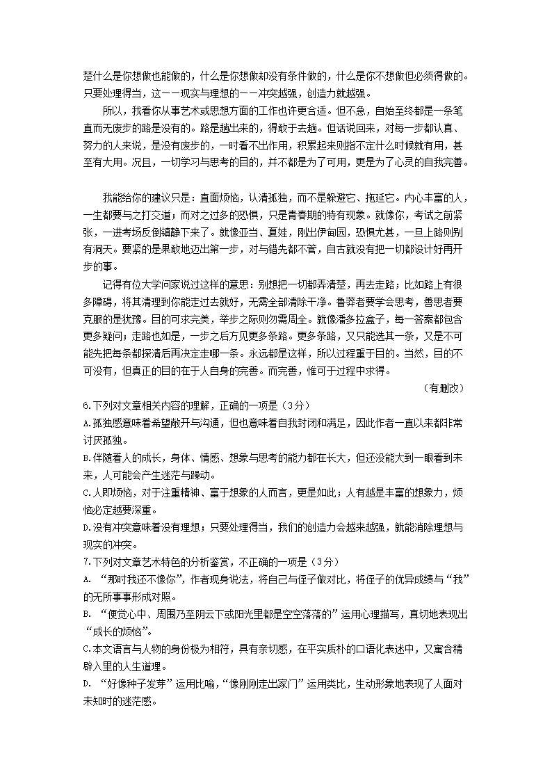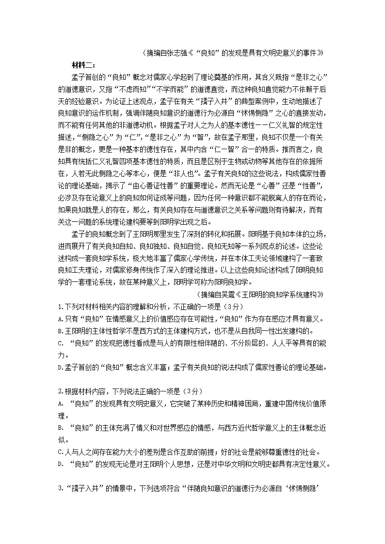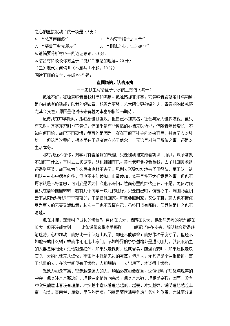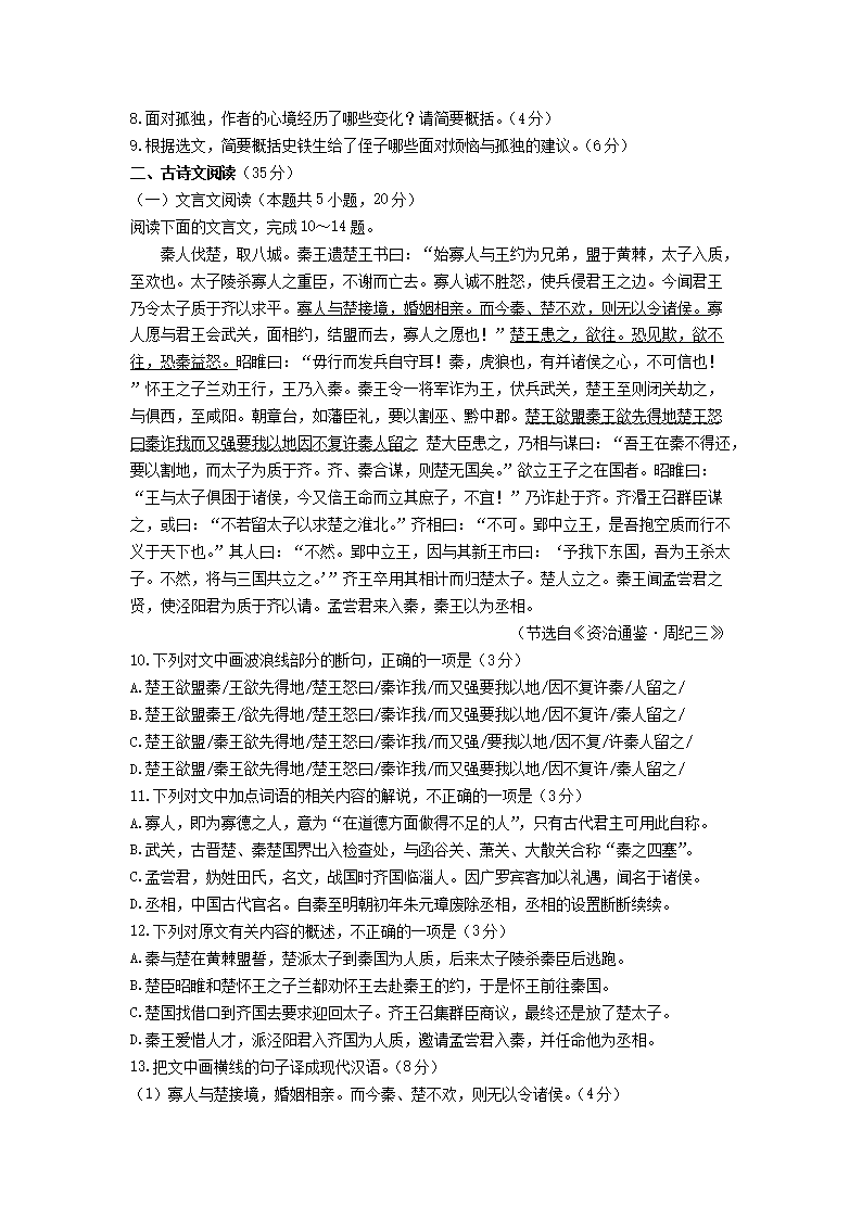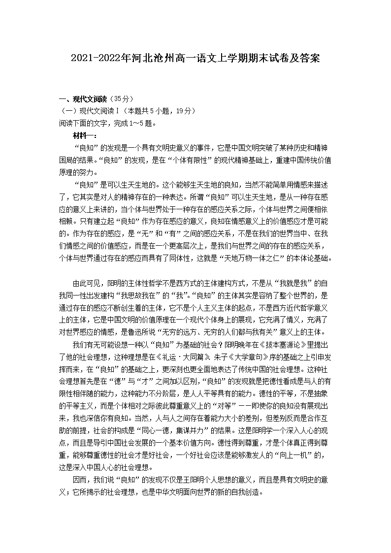 2021-2022年河北沧州高一语文上学期期末试卷及答案(Word版)08-30