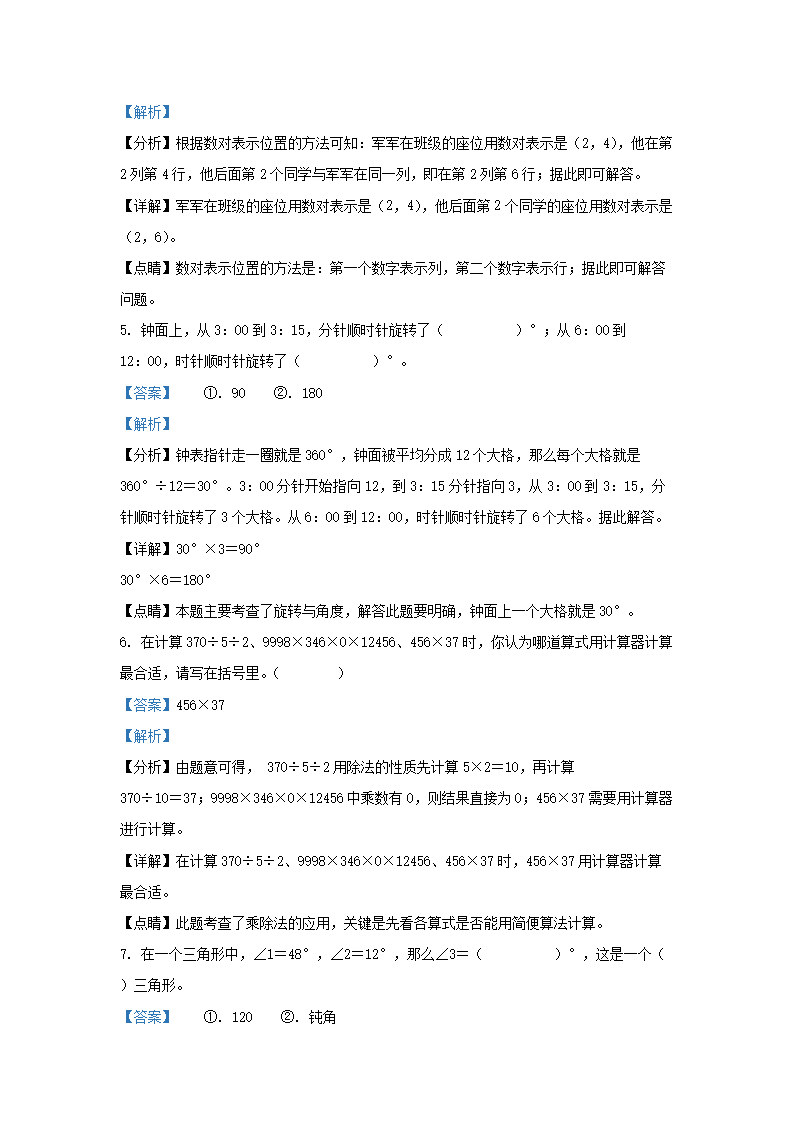 2021-2022学年江苏省扬州市经济技术开发区四年级下学期期末数学真题及答案(Word版)07-31
