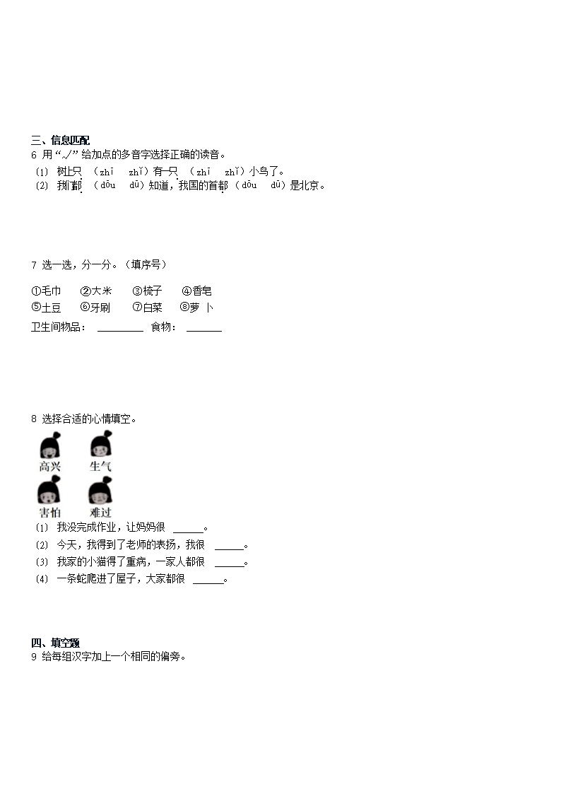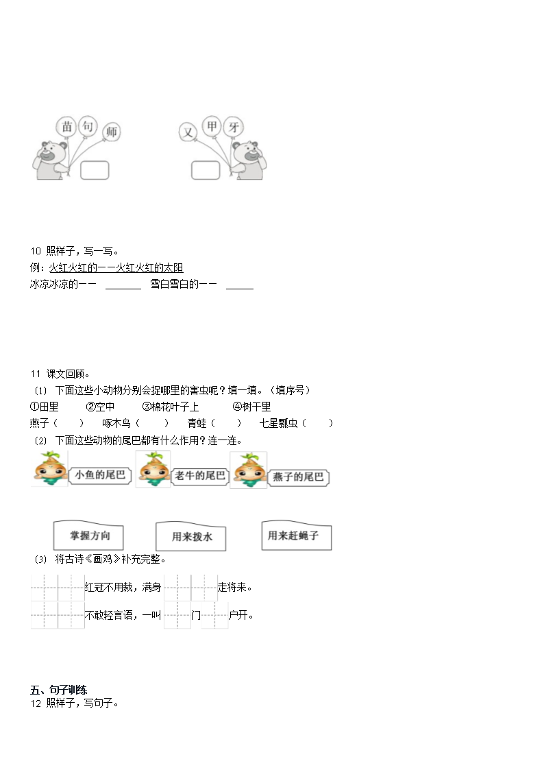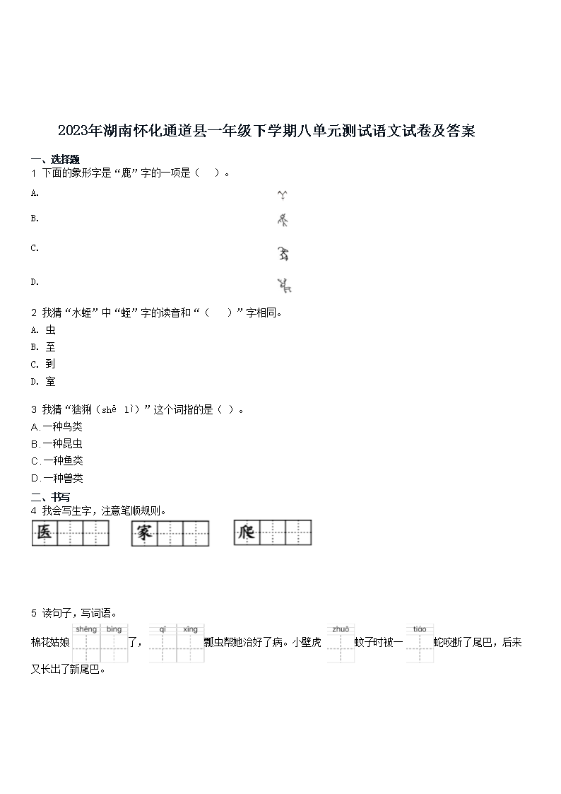 2023年湖南怀化通道县一年级下学期八单元测试语文试卷及答案(Word版)07-12
