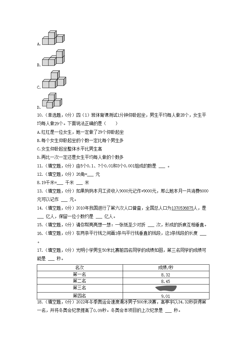 2022年北京市房山区四年级下学期期末数学真题及答案(Word版)06-16