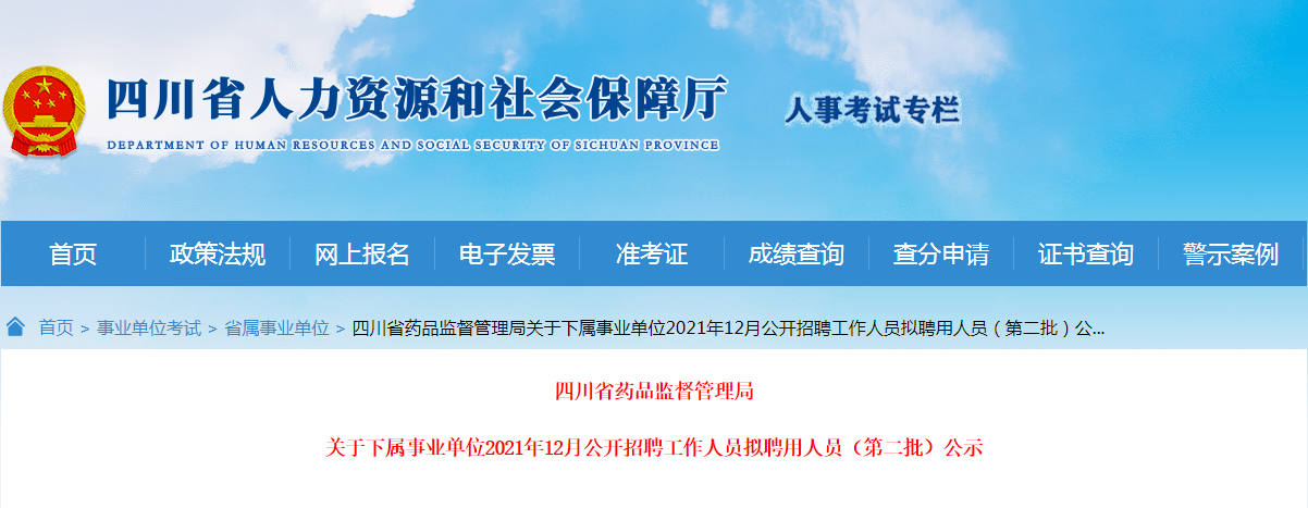 2021年12月四川药品监督管理局下属事业单位公开招聘工作人员拟聘用人员(第二批)公示09-24