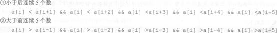 通过数组下标变量确定当前数组元素的前5个或后5个元素的位置,然后再通过大于或小于号连接各个数组变量,判断数组元素之间的大小关系。