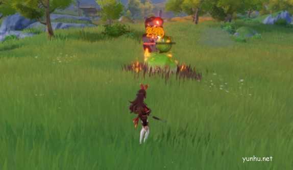 5、草元素和火元素反应:燃烧